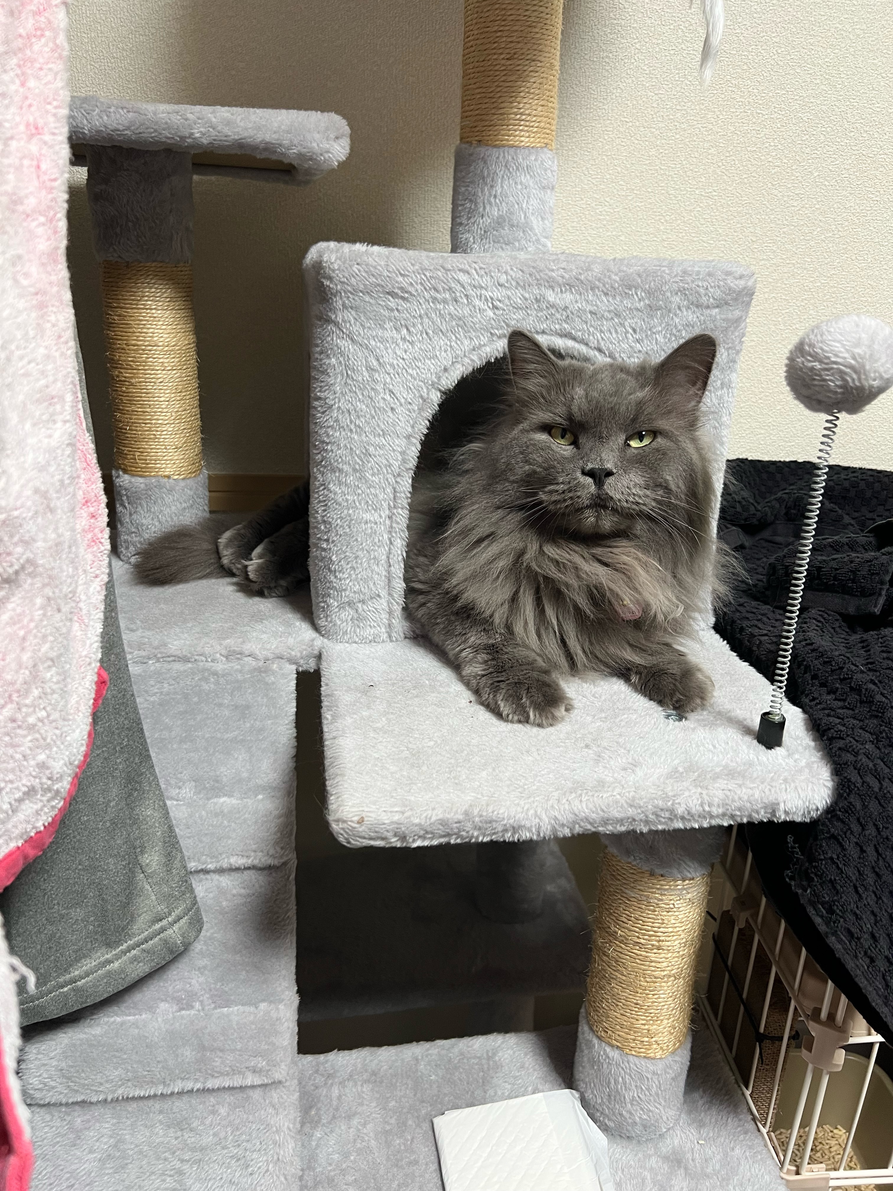 かっわいいですね!ちゃんとキャットタワー利用しててお利口さん