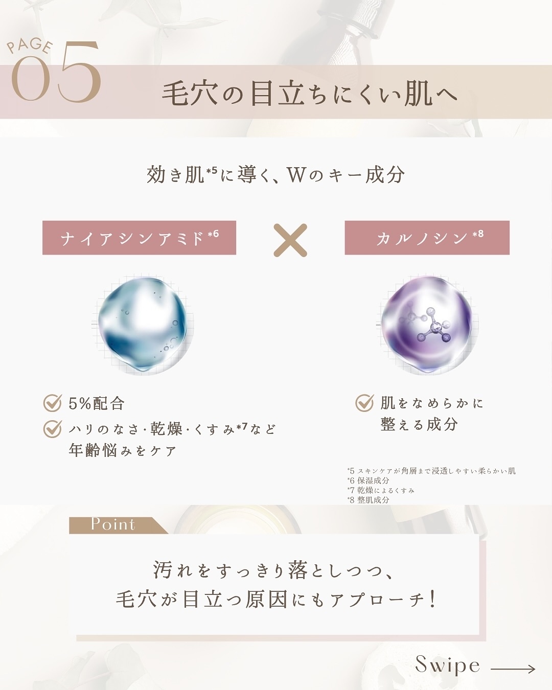 - 【定番化】リニューアル発売 1 炭×泥を配合した黒の吸着泡で毛穴汚れを一掃 汚れの吸着に優れた炭と、毛穴よりも小さい極微小の泥(クチャ)を配合。 過剰な皮脂と一緒に、毛穴の奥深く※8の汚れまで絡めとり、ゴッソリ落とします。 2 美容成分配合で洗顔しながら肌荒れをケア ビタミンCとCICAを配合することで、毛穴悩みと肌荒れを同時にケア。 使い続けることで、毛穴の目立ちにくい※9透明感のある肌へ導きます。 3 泥泡パックでスペシャルケア 毛穴汚れが気になる方は洗い流す前に10秒ほど泥泡パックすると、美容成分を浸透※8させながら、より毛穴の黒ずみ汚れを吸着することができるためスペシャルケアとしても使用できます。 ※8 角層まで ※9 うるおい効果によるもの 【こんな方におすすめ】 ☑毛穴の黒ずみ汚れが気になる方 ☑洗顔の泡立てが苦手な方 ☑皮脂やベタつきが気になる方