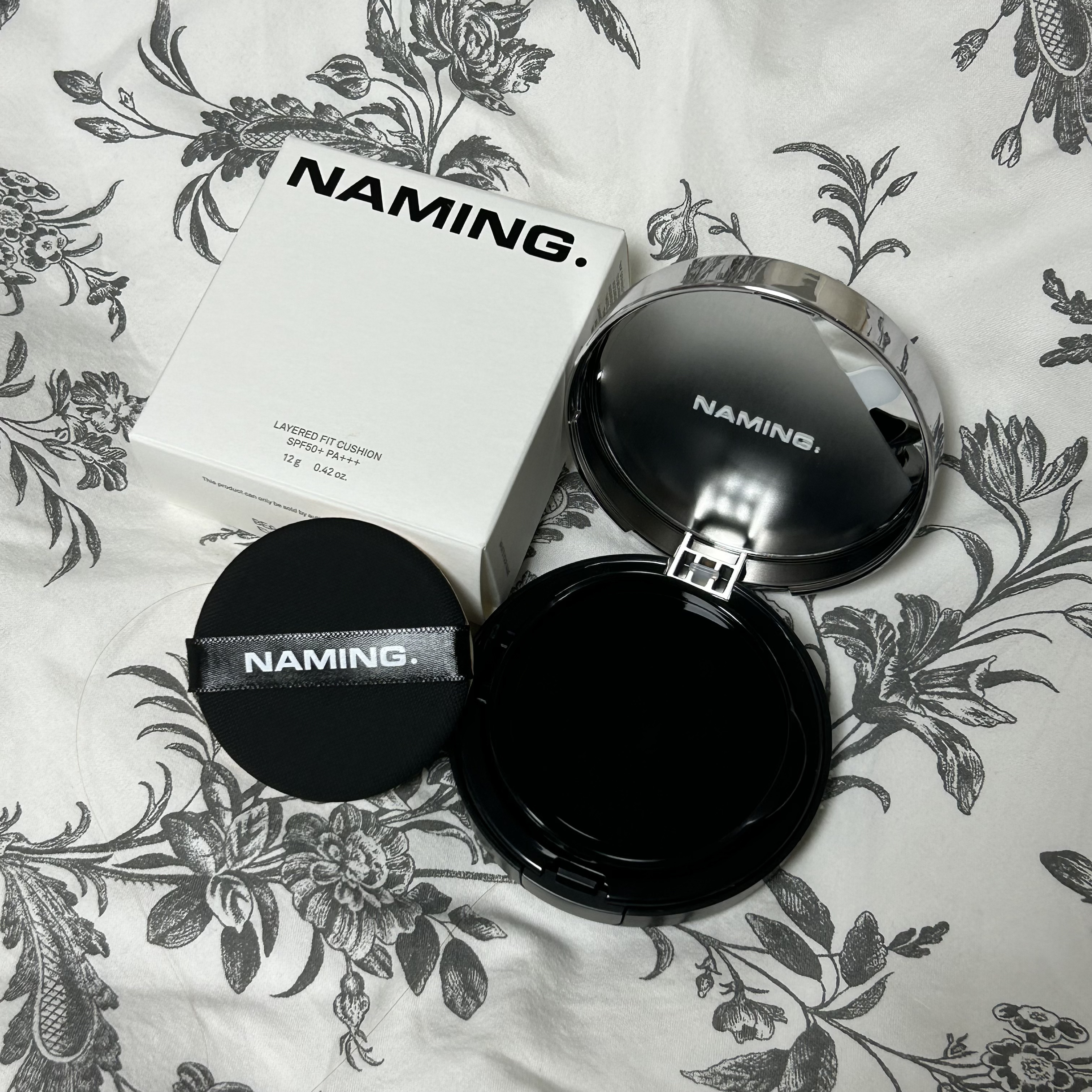 カバー力はあるのに厚塗り感がないところです✨ そしてツヤ肌に仕上がります💖 ぱぱっと簡単に塗ってもnamingのクッションは特に仕上がりがきれいでした! 薄く設計されたパフが重ねて塗っても密着してムラになりにくい仕様になってます👏