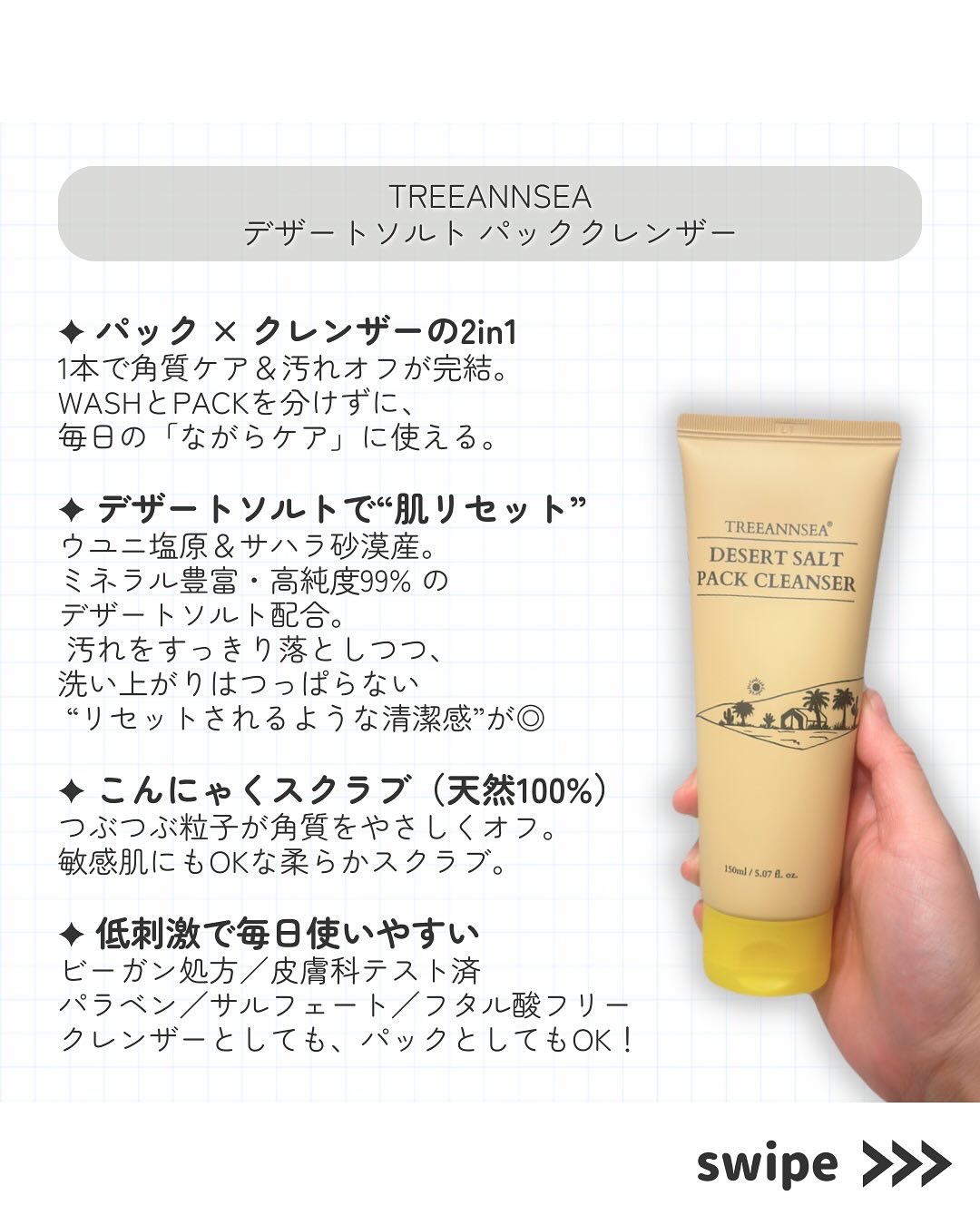 \TREEANNSEAデザートソルトパッククレンザー/率直なレビューをする約束で、Picky.JapanさまとTREEANNSEAさまからいただきました🙇ミネラルを豊富に含むデザートソルトを配合したパックとクレンジングを同時にできるアイテム🐫...