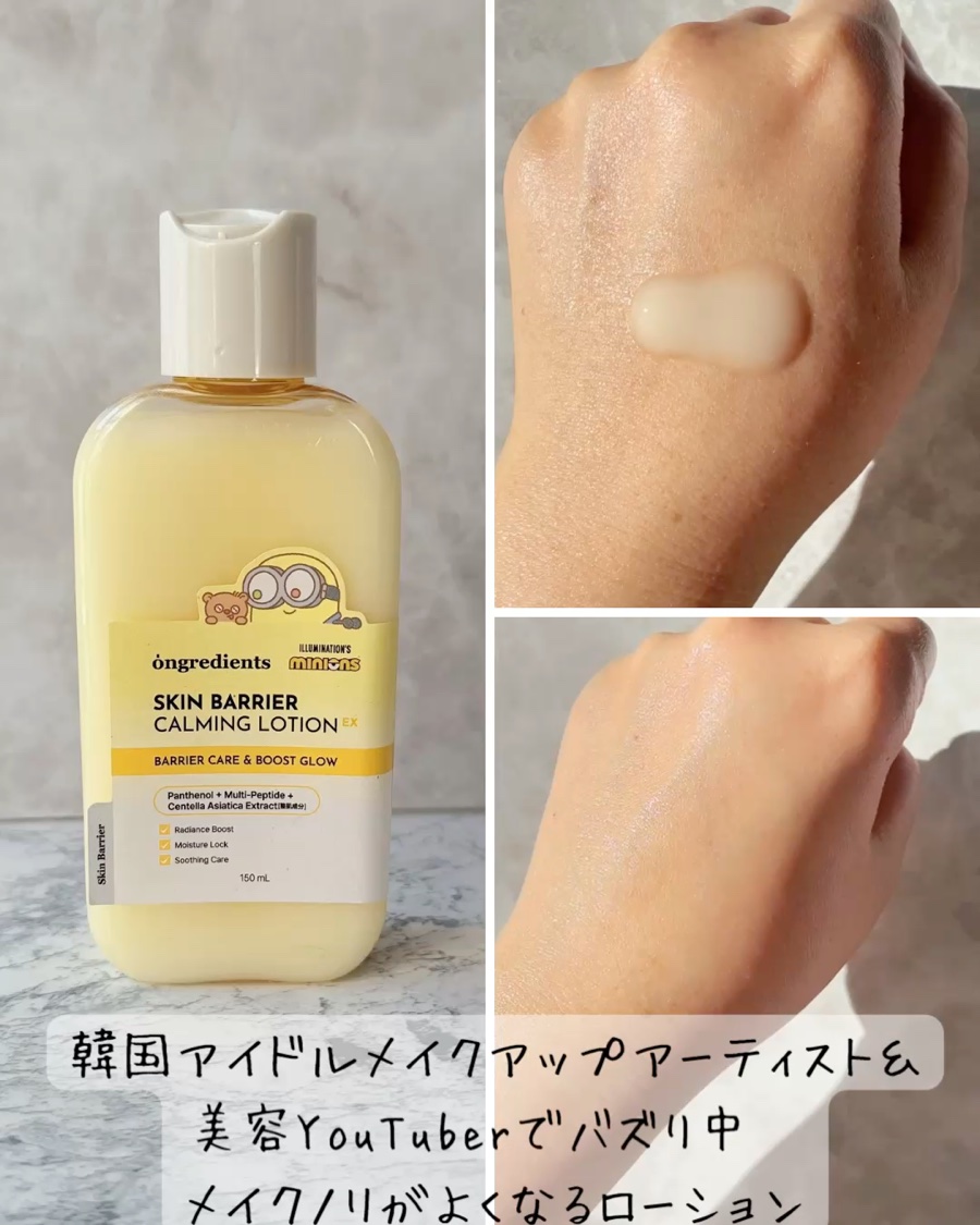 - 「ongredients(オングリディエンツ)」が、ついに日本のオフライン店舗に登場! <2025年8月30日(土)(*1)より全国のプラザ、ドン・キホーテ(*2)にて先行販売を開始> メイクノリをサポートするツヤ肌乳液 【主要成分】 ・オリオソームTECA(*3) ツボクサ由来成分(*3)をオリオソーム技術で包み込み、肌に馴染みやすい設計にすることで、乾燥など外的刺激を受けた肌を整えます。 ・複合ペプチド(*4)&ヴィーガンコラーゲン(*5) 肌コンディションを整え、輝くようなツヤ肌を演出します。 ・パンテノール(*6) 角質層まで浸透し、うるおいのある肌印象へと導きます。 【こんな方におすすめ】 ・ツヤ感のあるメイクを好む方 ・水分感のあるツヤ肌を目指したい方 ・外的刺激により乾燥でゆらいだ肌を丁寧にお手入れしたい方 (*1)店頭開始日となり、購入可能日は各店舗により異なります。 (*2)一部店舗を除きます。 (*3)アシアチコシド,アシアチン酸,マデカシン酸(整肌成分) (*4)ヘキサペプチド-11,オリゴペプチド-1,オリゴペプチド-2,オリゴペプチド-3,アセチルヘキサペプチド-8,カラスムギペプチド,トリペプチド-1銅,パルミトイルヘキサペプチド-12,パルミトイルペンタペプチド-4,パルミトイルテトラペプチド-7,パルミトイルトリペプチド-1,トリペプチド-1 (*5)ハイビスカスコラーゲンから抽出した加水分解コラーゲン(整肌成分) (*6)保湿成分