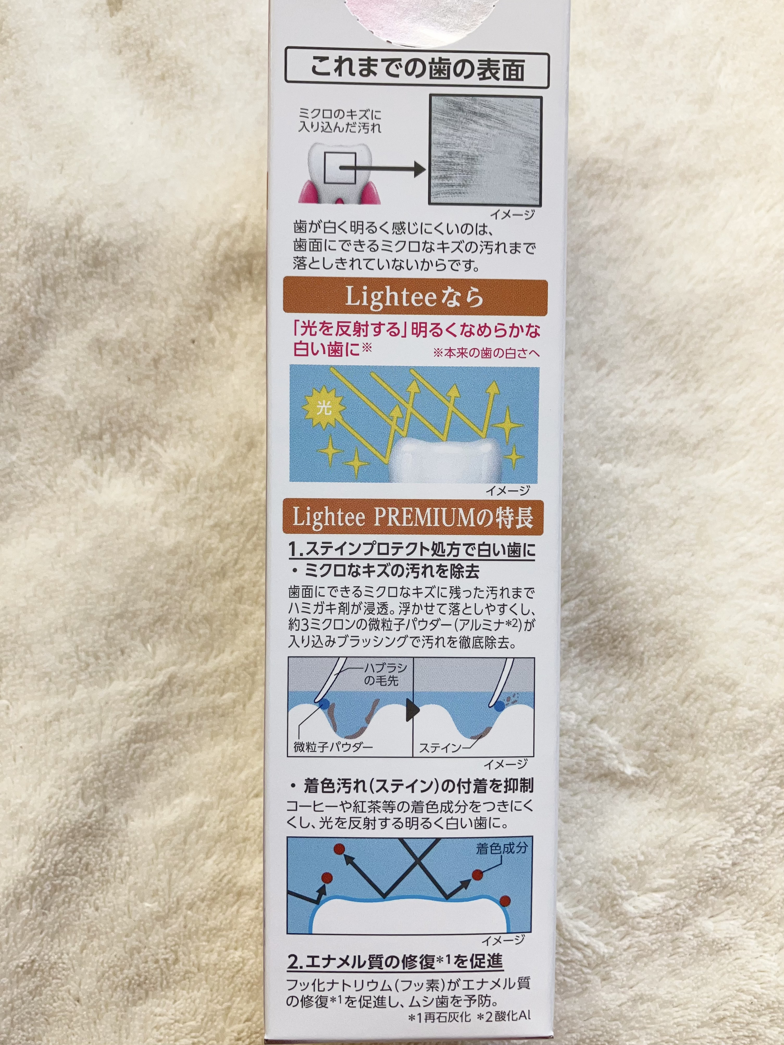 ライオンさまからいただきました。LighteeホワイトニングハミガキPREMIUM[医薬部外品]程よい泡立ちと、上品な紅茶とビターな柑橘のシトラスティーミントが、どタイプでした。着色汚れを除去しやすくするだけでなく、ステインの付着を抑制する効...