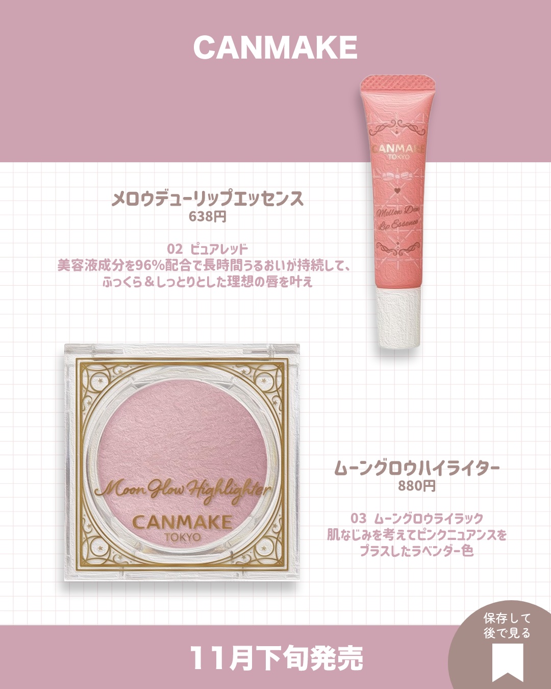 📣🆕新作情報!2025年CANMAKE冬の新作コスメキャンメイクの2025年冬コスメが発売されるよ!ロールオンタイプで人気のフレグランスから新作が!チークも2タイプから新色が出るよ!【CANMAKE】発売日:2025年12月下旬発売☑︎メイク...