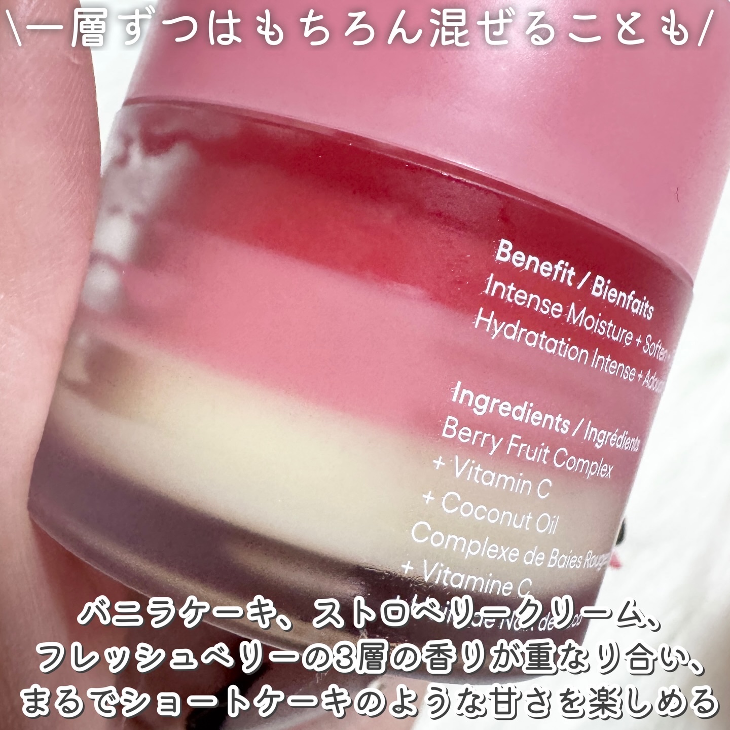 LANEIGEリップスリーピングマスクショートケーキ新登場のショートケーキフレーバー🍰バニラケーキ、ストロベリークリーム、フレッシュベリーの3層の香りが重なるとショートケーキのような甘さを楽しめるよ💖こっくりしたテクスチャーで、やわらかくぷる...