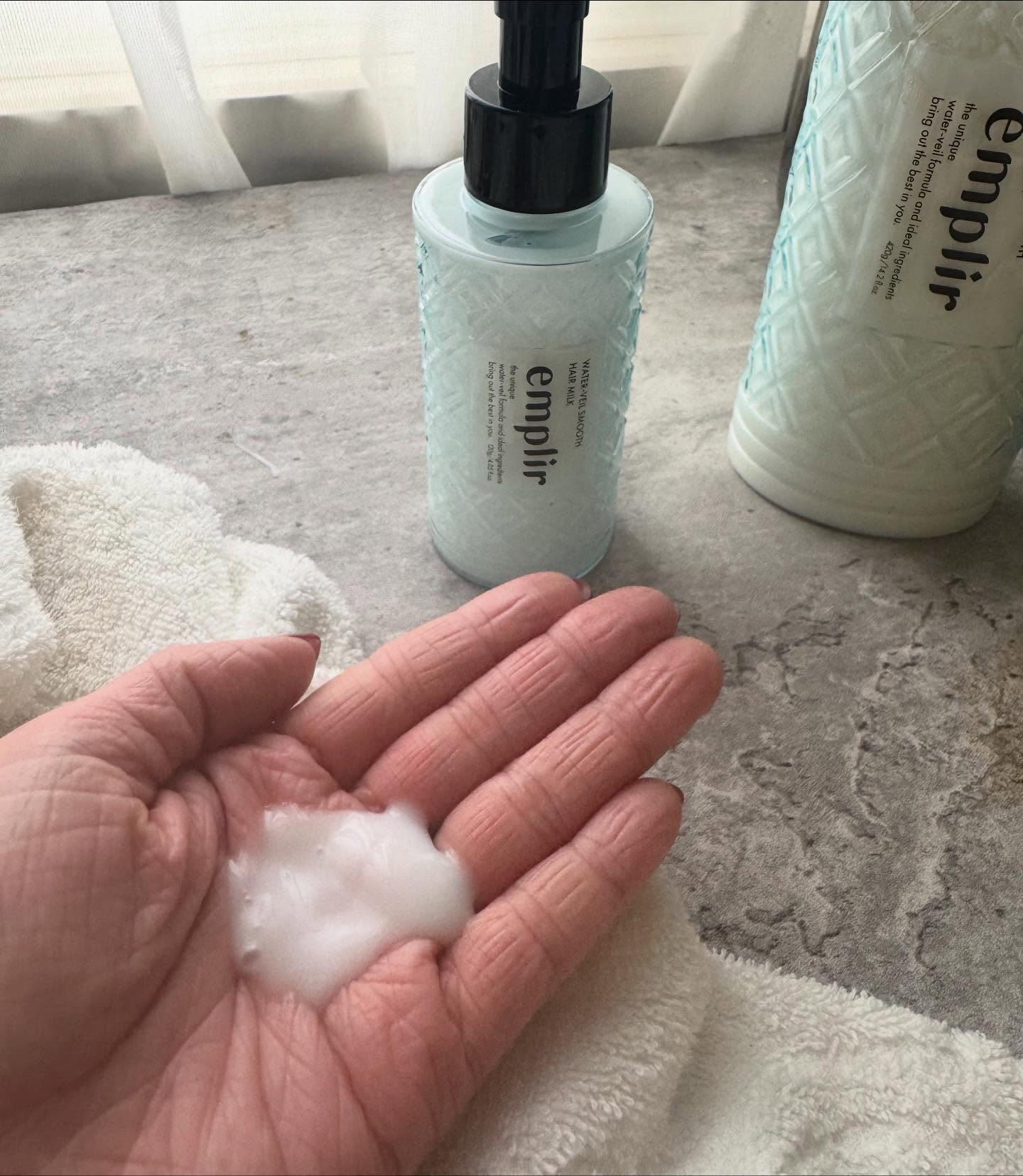 🤍emplir(アンプリール)#アンプリールウォーターベールスムースシャンプー#アンプリールウォーターベールスムーストリートメント#アンプリールウォーターベールスムースヘアミルク新登場したセットを使ってみたよ🫧シャンプーは泡立ちがよくて、もこ...