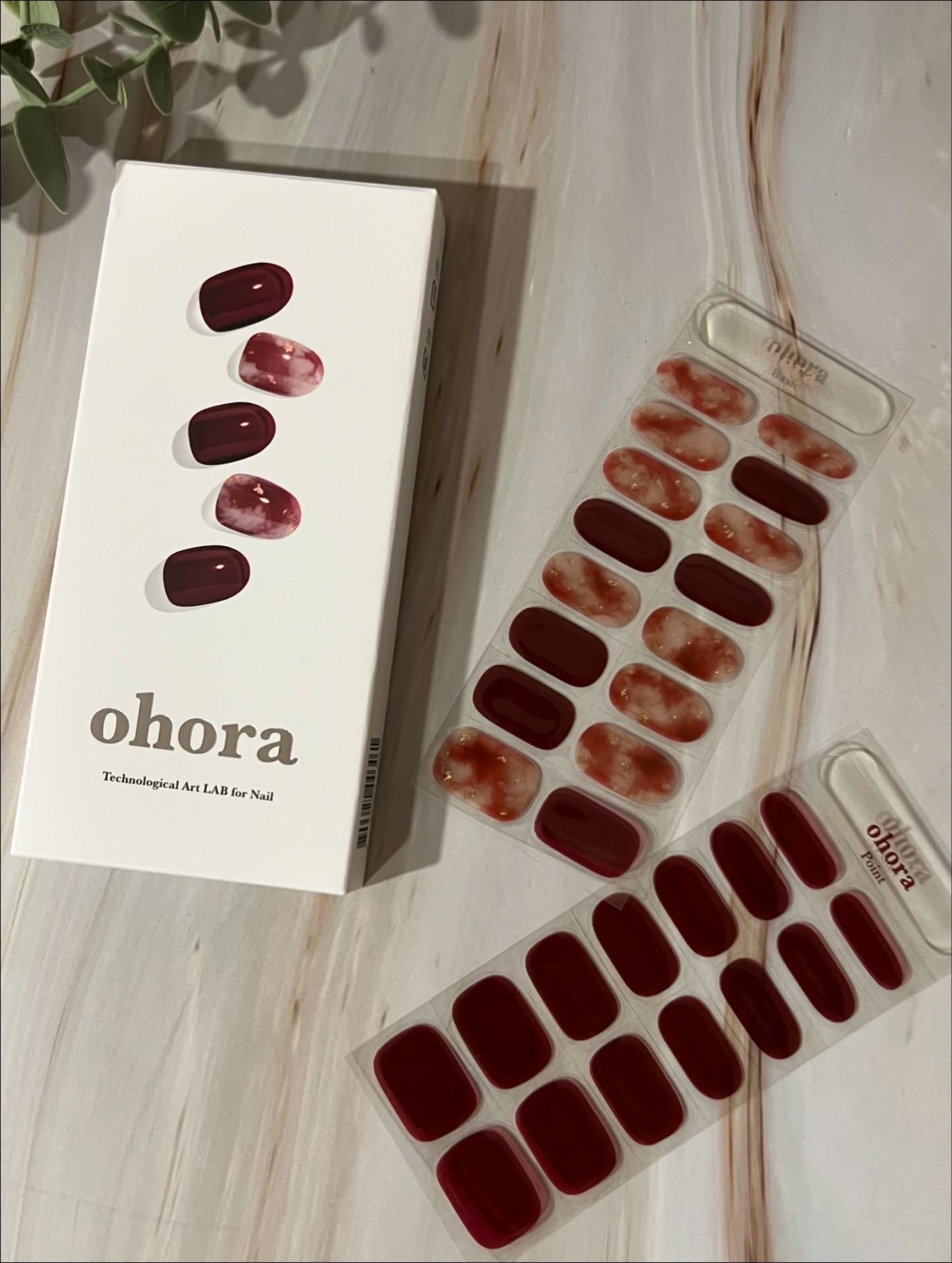 ohora昔、セルフでジェルネイルしてたけど簡単なデザインしか出来ないし、道具をたくさん揃えたりが大変で💦ohoraのネイルシールだと、貼った後にはみ出た部分をカットしてジェルランプで硬化するだけ!貼って固めるだけで凝ったデザインが簡単に完成...