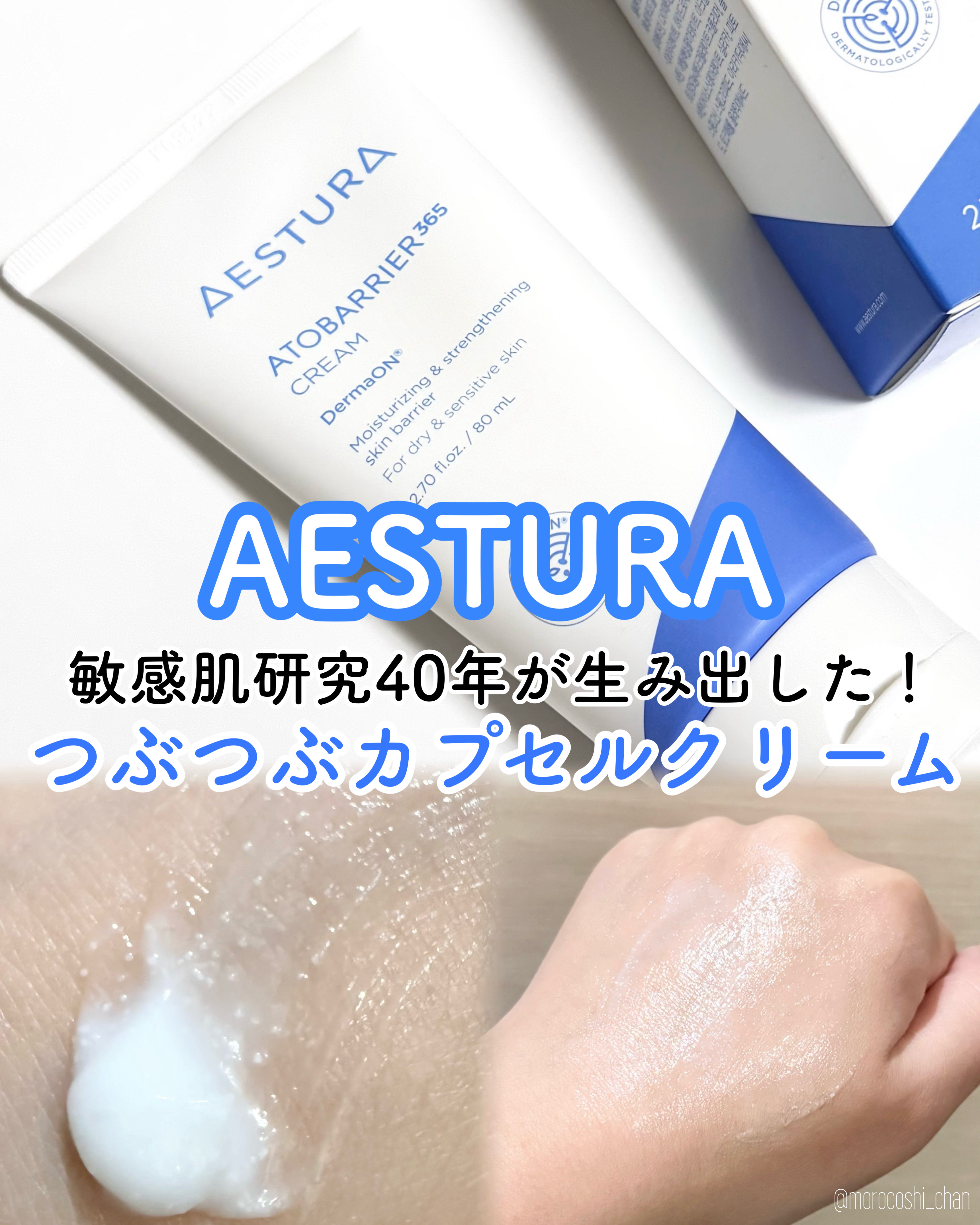 AESTURAアトバリア365クリーム高密度セラミドカプセル*を配合!✨120時間*2肌のうるおいをキープしてくれるそうです🩵敏感肌研究40年が生み出したAESTURA独自のセラミド技術でつぶつぶと目に見えるカプセルが、肌温度に触れると溶けだ...