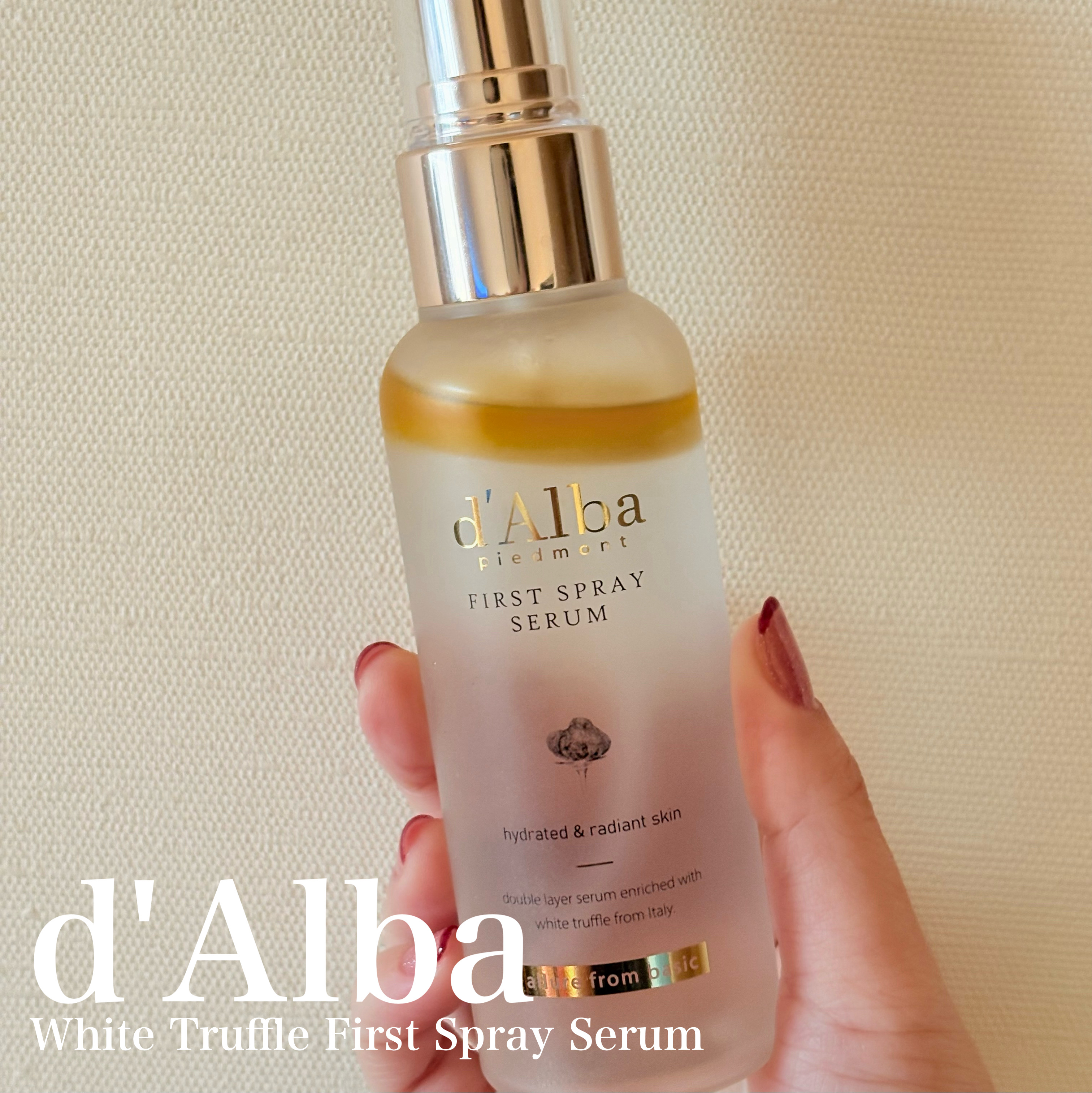 速攻ツヤミストの愛称でバズった、ダルバ ホワイトトリュフファーストスプレーセラム✨ セラムとオイル二層タイプの保湿ミストでトナー+ミスト+セラム+エッセンスを一度にまとめて手軽に保湿&弾力ケアできちゃう! 自然由来のイタリア産ホワイトトリュフ(ツベルマグナツムエキス)とトコフェロールを配合し、ダルバだけの成分「トリュフェロール™」で肌の角質層まで潤わせながらハリをケアします。 毎日エアコンでほんっっとに乾燥を感じていたけど、こちらのミストをシュッシュするとしっとり肌を維持してくれるしなによりツヤっとなるところが好き♡