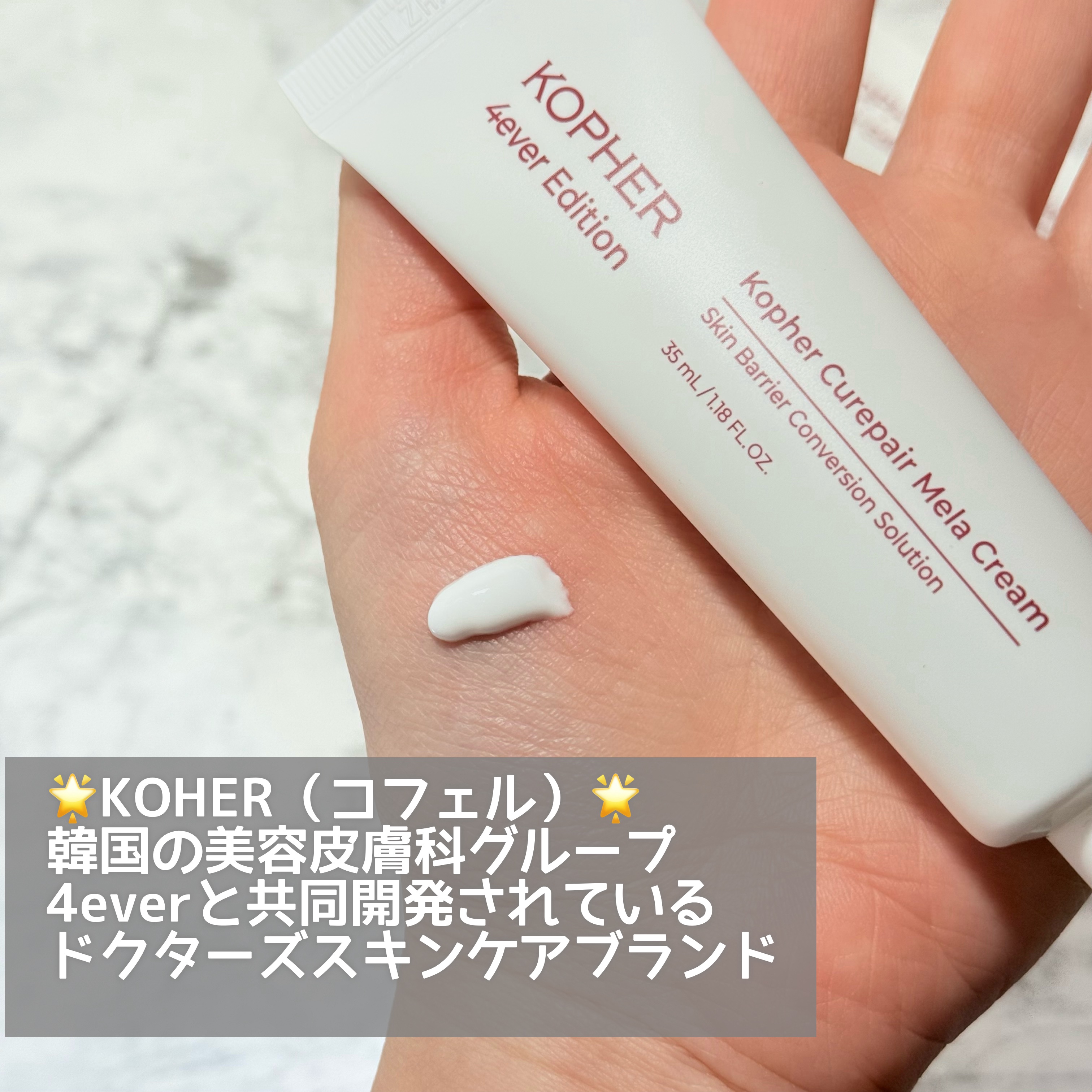 #PRAnyWe様(@anywe.magazine)主催のコスメラボでいただきました(*ˊᵕˋ*)💓以前からSNSでもよく見かけていて口コミの評価も良かった❤️KOPHER(@kopher_jp)のキュリペアメラクリームを使ってみました✨KO...