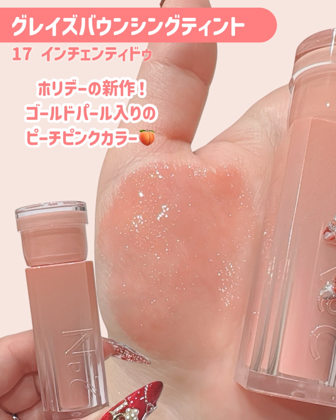 | 透け感のある発色が美しく 塗った後のツヤ感と保湿力も◎ 色展開が天才的で全色可愛すぎる…! | 詳細を見る | ||