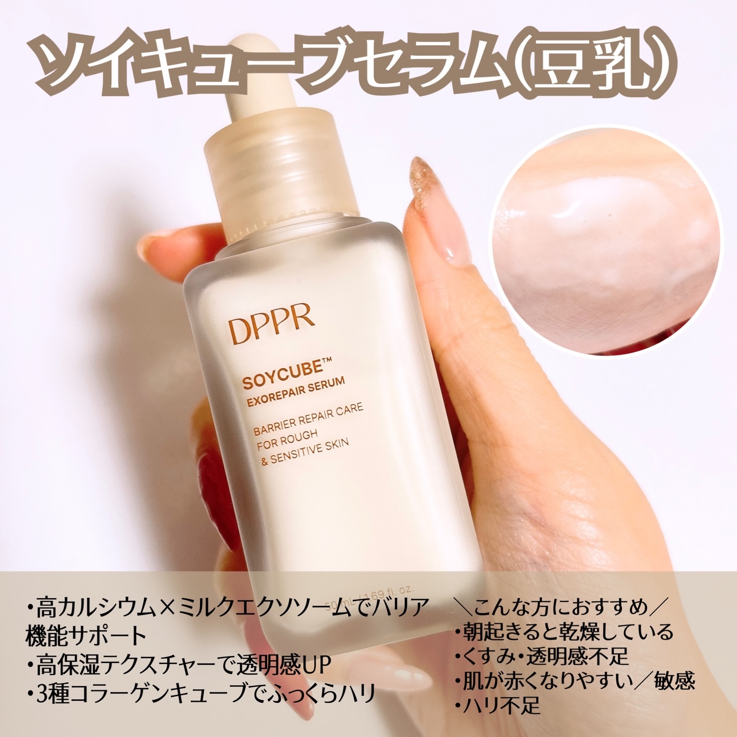 ✨DPPRセラム3点ライン徹底比較✨今回使ったのは💧ヒアルキューブセラム(水光)/🔵PDRNセラム(中顔面ケア)/🫘ソイキューブセラム(豆乳)それぞれ特徴が違って、自分の肌悩みに合わせて選べる3本!⸻【💧ヒアルキューブセラム(水光セラム)】独...