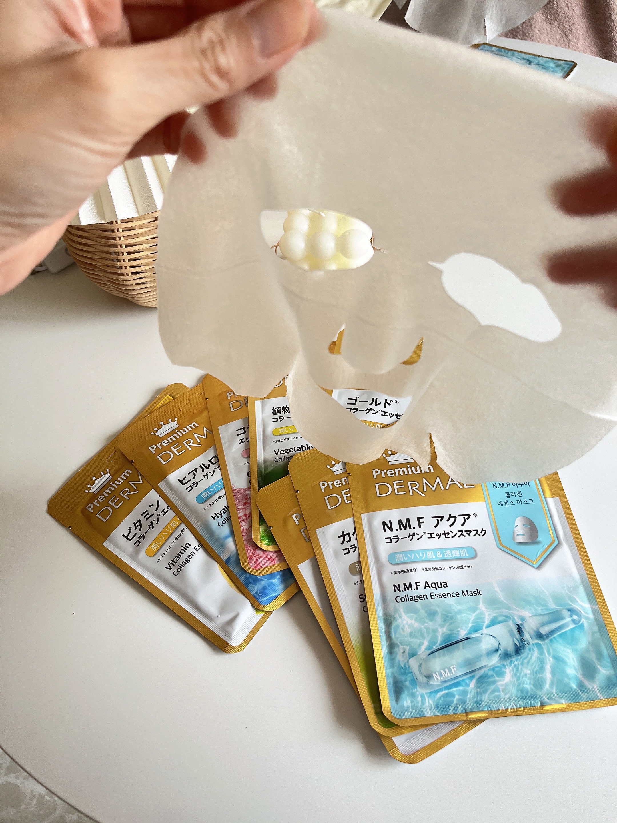 ダーマプレミアムマスクを使いました。10種類のマスクが入ってたよ。★・カタツムリ※1コラーゲン※エッセンスマスク・コエンザイムQ10※3コラーゲン※2エッセンスマスク・真珠※4コラーゲン※2エッセンスマスク・ゴールド※5コラーゲン※2エッセン...