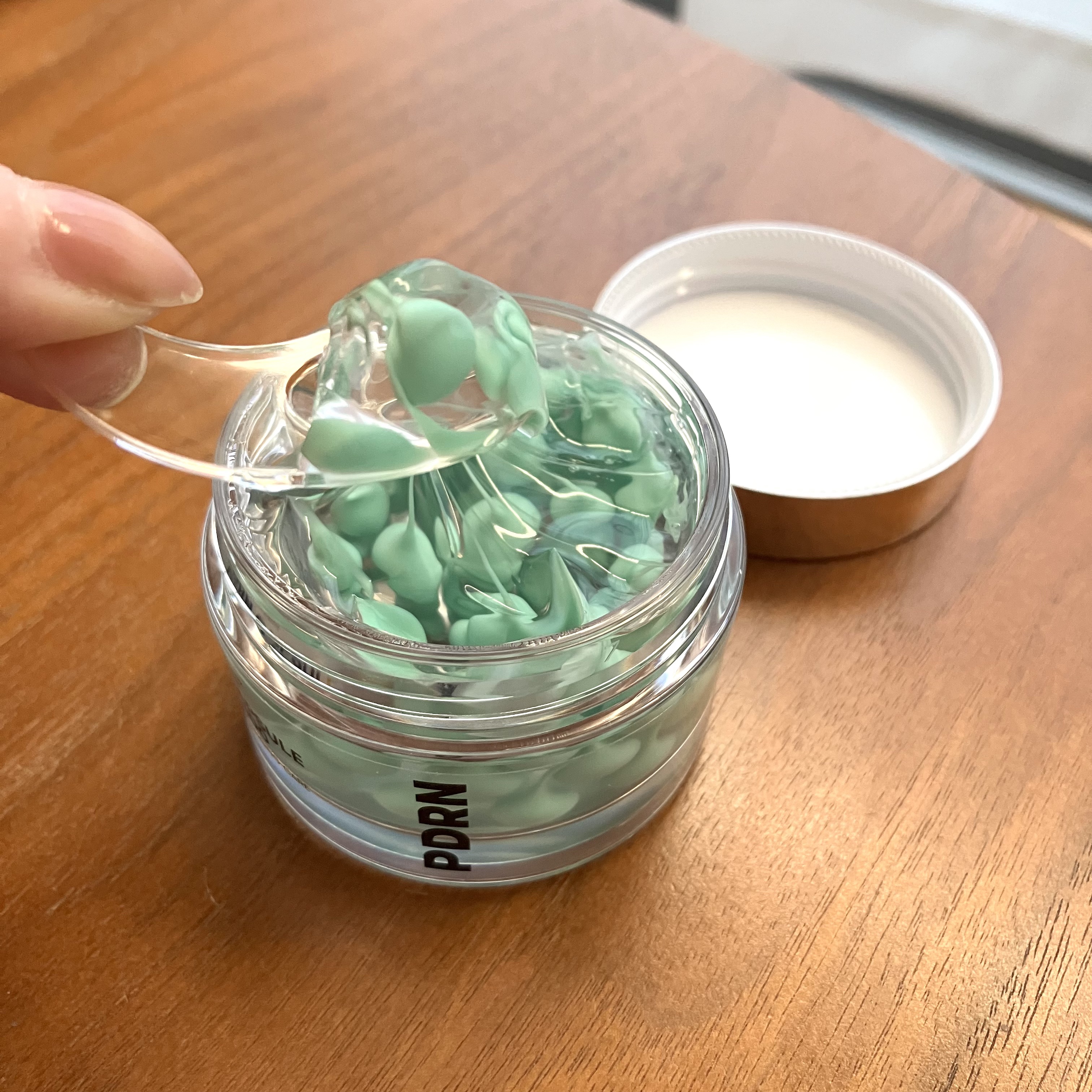 - 「いい感じの肌」を目指す韓国高麗人参由来の植物性PDRN(整肌)がたっぷり入ったカプセルクリーム。 ライトジェルに含まれるペプチド、ヒアルロン、パンテノールと一緒に肌へなじませることで、水分感溢れるプルンプルンな肌印象へ! ・カプセルクリーム(ミント):高麗人参由来のPDRN(整肌)配合クリーム。 ・ライトジェル(透明):すっきり水分ジェルクリーム。油水分・保湿ケア <すこやかなツヤ肌を保つ美容保湿成分がプラス> ✔ セラミド:しっとりした肌ケア、ツヤ保護膜 ✔ 9つのペプチド : 健やか肌のキープ、肌バリア保護 ✔ パンテノール : 保湿サポート&肌バリア機能を守る ✔ スクワラン : 肌バリアサポート ✔ 10種のヒアルロン酸 : 肌角層へ潤う水分を届ける ■使い方 洗顔後、スキンケアの最後の段階で適量を手に取り、肌にやさしく塗り広げます。 ■このような方へおすすめ ハリのない肌が気になる方 ツヤのある美肌を目指したい方 乾燥肌で肌コンディションを整えたい方 外部刺激によってゆらぐ肌へのケアが必要な方 PDRN(整肌)配合商品でハリケアをしたい方