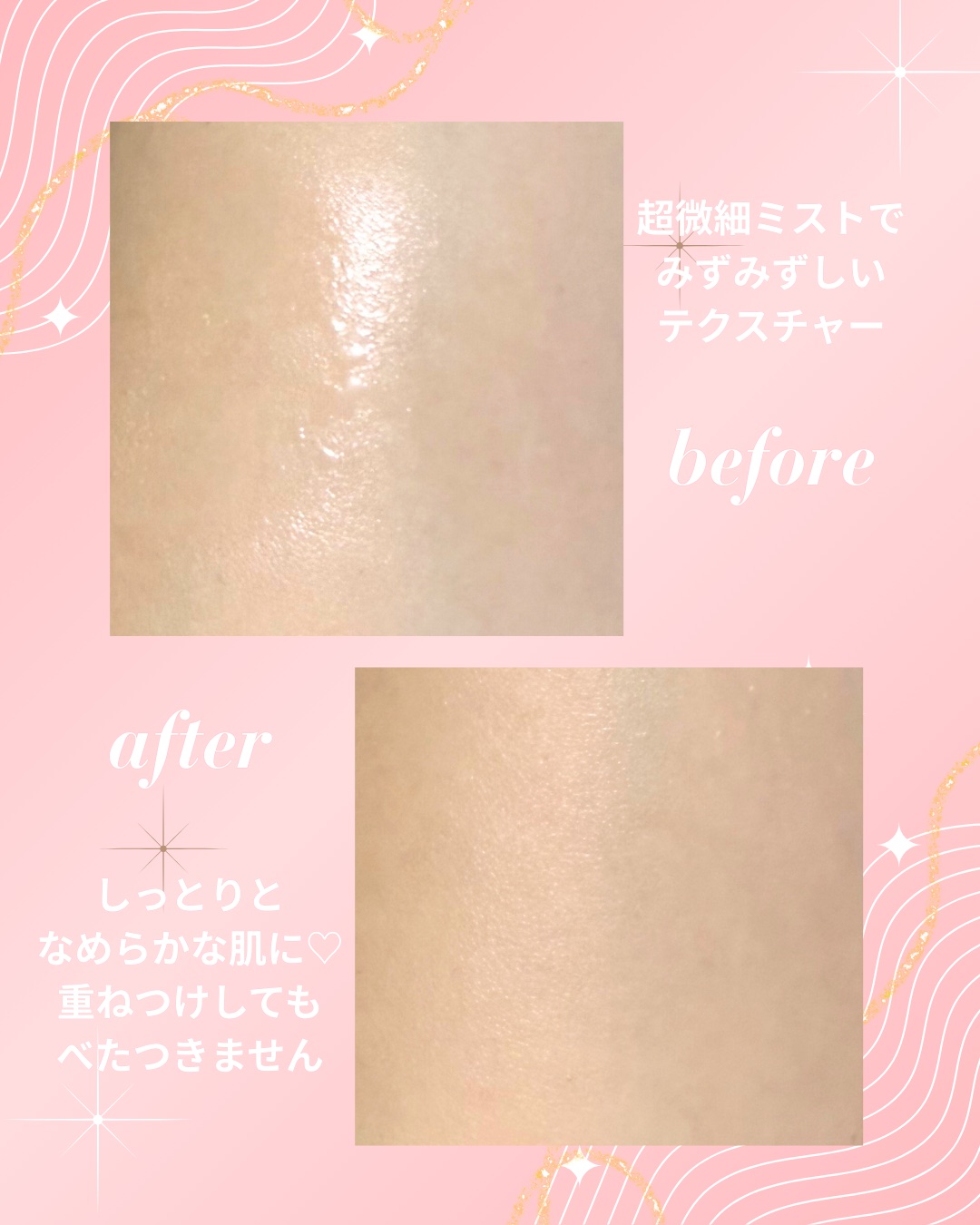 サラサラミストでメイク崩れ知らずに💖 メイクの上からシュッとひと吹きするだけでベタつきを抑えサラサラな肌に仕上げてくれるパウダーin超微細ミスト✨ 密着ヴェール処方により汗や皮脂によるメイク崩れを防ぎ長時間美しいメイクをキープしてくれます❣️ 女性らしいフレッシュフローラルの香りも素敵です💕 パケも可愛くてコロンと小さく持ち運びしやすくて助かる✨