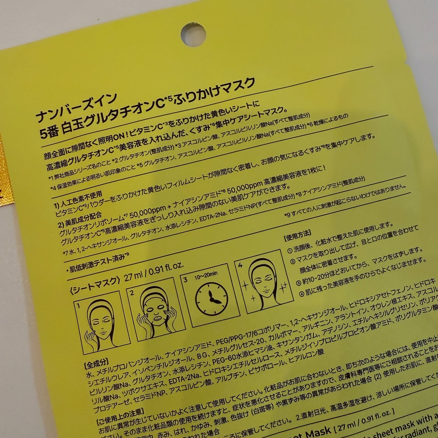 商品詳細情報numbuzin 5番 白玉グルタチオンCふりかけマスク