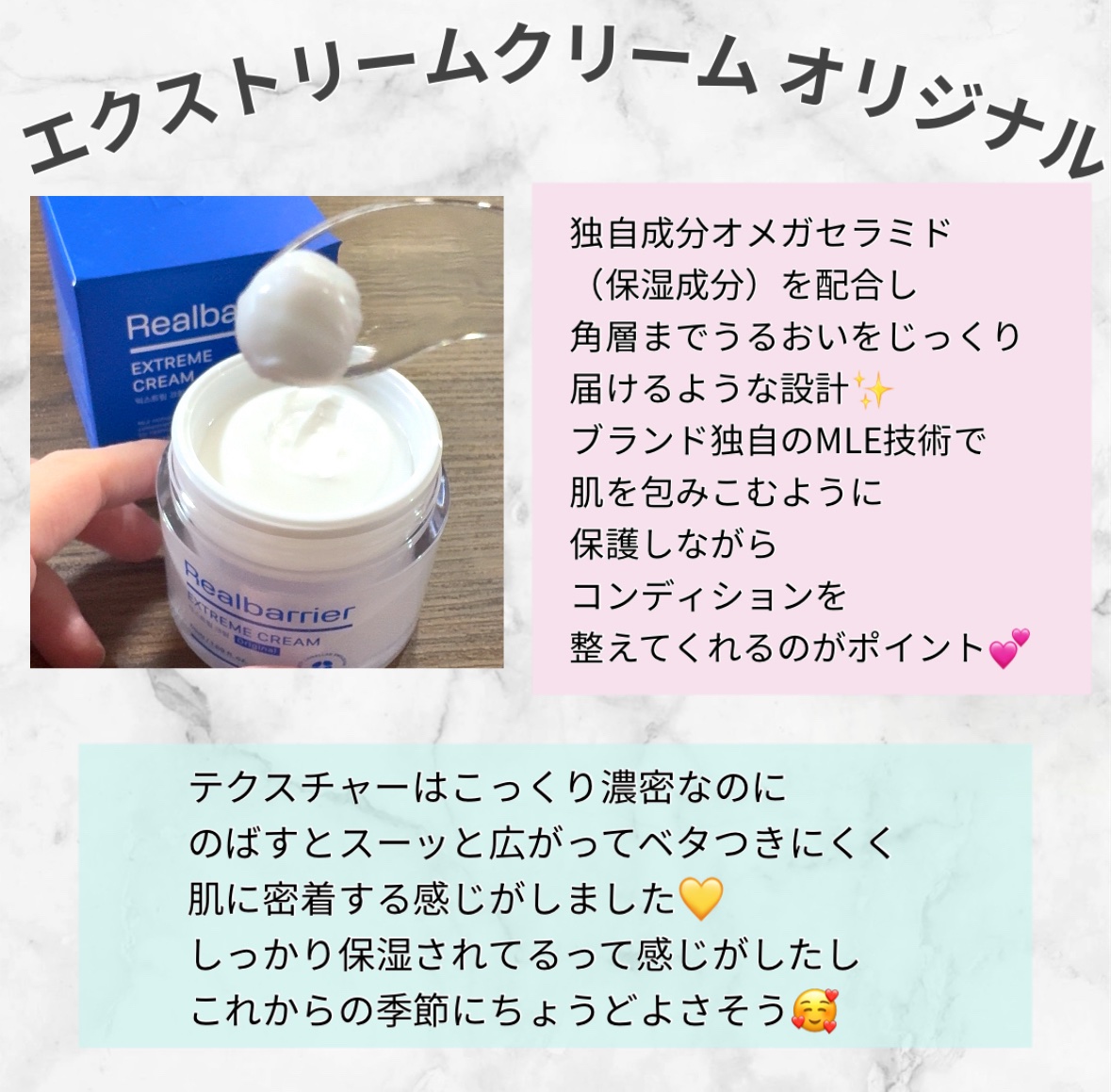 ⚪️RealBarrier⚪️リアルバリアエクストリームクリームオリジナル✅持続型高保湿セラミドクリームこってりとしたバームタイプ肌に馴染ませるとなめらかに保湿❕高保湿だけどベタつきにくいのが嬉しい☺️弱酸性フォーミュラで肌バリアケアにぴった...