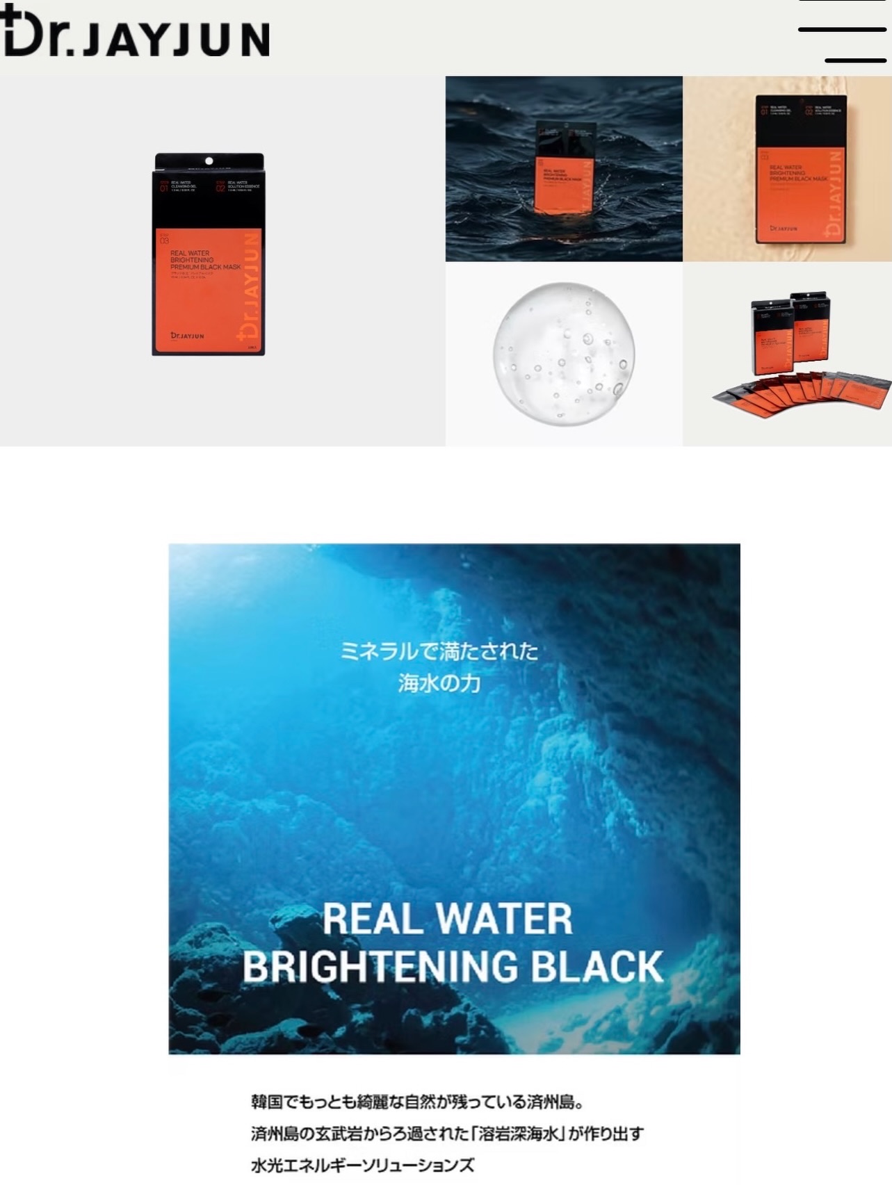 - STEP1 洗顔フォーム 販売名:JAYJUNリアルウォーターBBマスク01 水、パルミチン酸、グリセリン、水酸化K、ステアリン酸、ラウリン酸、ミリスチン酸、ミツロウ、ステアリン酸PEG-100、ステアリン酸グリセリル、ジステアリン酸グリコール、コカミドプロピルベタイン、塩化Na、香料、EDTA-2Na、オリーブ油脂肪酸ソルビタン、PG、ヒドロキシエチルセルロース、クロルフェネシン、パパイア果実エキス、海水、BG、1,2-ヘキサンジオール、フェノキシエタノール、ヒアルロン酸Na、エチルヘキシルグリセリン STEP2 エッセンス 販売名:JAYJUNリアルウォーターBBマスク02 水、メチルプロパンジオール、グリセリン、ナイアシンアミド、海水、ヒドロキシエチルウレア、BG、1,2-ヘキサンジオール、ポリアクリル酸グリセリル、カプリリルグリコール、フェノキシエタノール、ベタイン、アラントイン、トロメタミン、カルボマー、PEG-60水添ヒマシ油、ダイウイキョウ果実エキス、アデノシン、EDTA-2Na、ヒアルロン酸Na、香料、オクテニルコハク酸デンプンNa、マルトデキストリン、パントテン酸Ca、β-グルカン、アスコルビルリン酸Na、酢酸トコフェロール、ピリドキシンHCl、エチルヘキシルグリセリン、シリカ STEP3 シートマスク 販売名:JAYJUNリアルウォーターBBマスク03 水、メチルプロパンジオール、グリセリン、1,2-ヘキサンジオール、ナイアシンアミド、海水、ベタイン、BG、ヒドロキシエチルウレア、PEG-60水添ヒマシ油、アラントイン、アデノシン、フェノキシエタノール、ヒアルロン酸Na、カルボマー、トロメタミン、EDTA-2Na、トリ(カプリル酸/カプリン酸)グリセリル、コハク酸ジエトキシエチル、水添レシチン、香料、リン脂質、セラミド3、β-グルカン、エチルヘキシルグリセリン