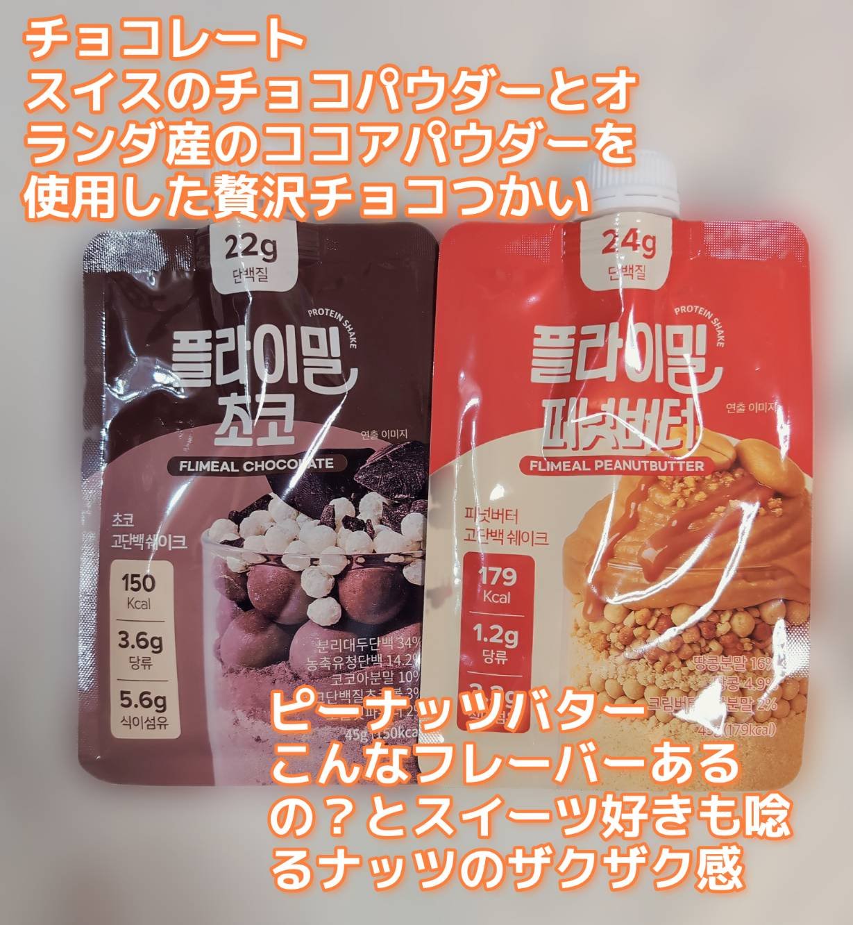 FLIMEALプロテインシェイクオリーブヤングとQoo10*で1位になったプロテインシェイク❣️水や牛乳をパウチに入れてふるだけで作れるから、忙しい朝にもぴったり✨日本の一般的なプロテインに比べて糖質は約1/10程度で、サクサクのプロテインボ...