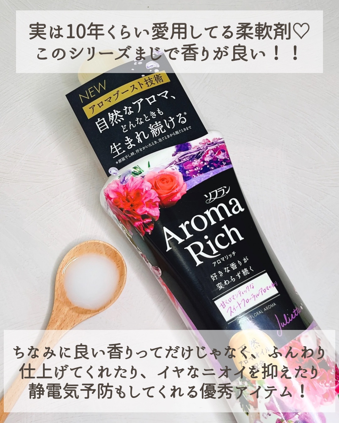 ご閲覧ありがとうございます💐\この香りたまらんデス‼︎/🤍ソフランアロマリッチジュリエット・レイラ・エリー🤍「アロマリッチが一緒なら"自分の好き”に正直に、いつでもどんな時も楽しめる。日々の生活に自信をもたらす。」がコンセプトの柔軟剤🥺✨香り...