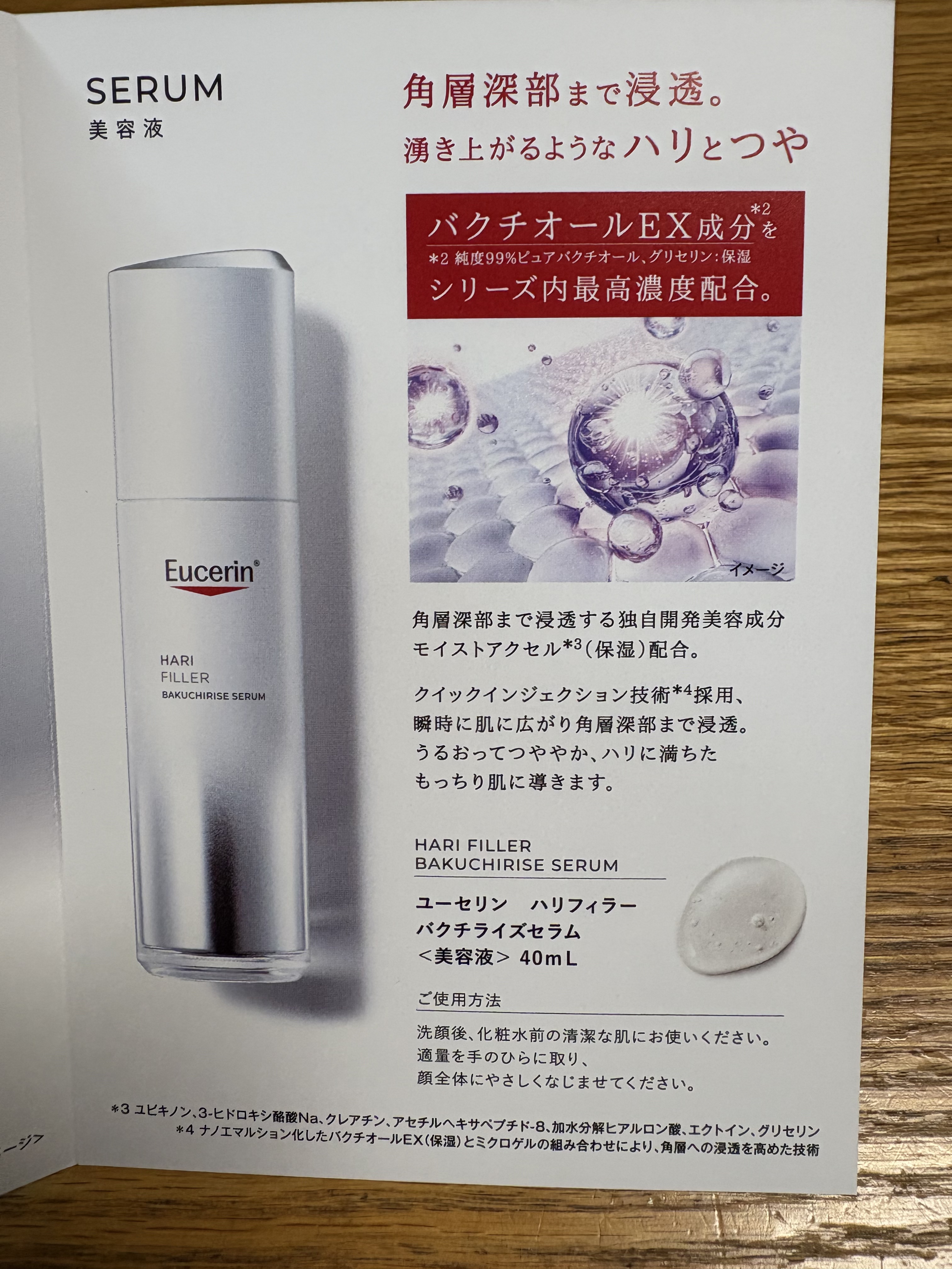 ユーセリンハリフィラーバクチライズセラム✨世界で100年以上の歴史を持つ、皮膚科学ブランドのパイオニアEucerin(ユーセリン)日本向けに独自開発した商品です。純度99%ピュアバクチオール(保湿)が配合されていています。角層深部まで浸透する...