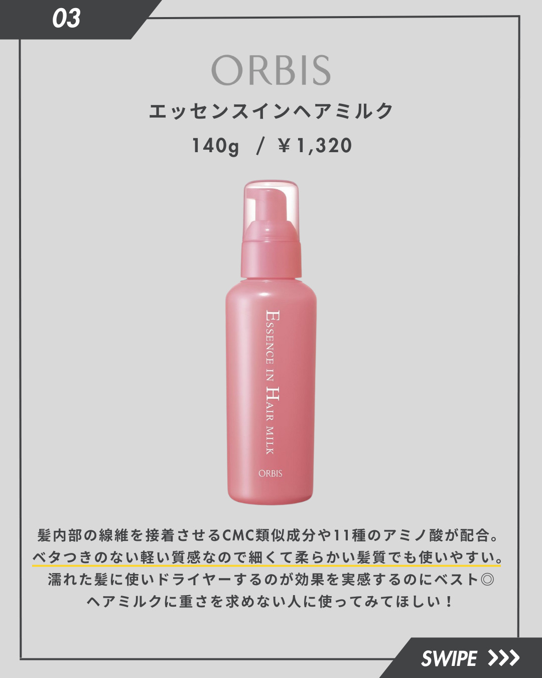 オルビス エッセンスインヘアミルク | 1,320円〜 |