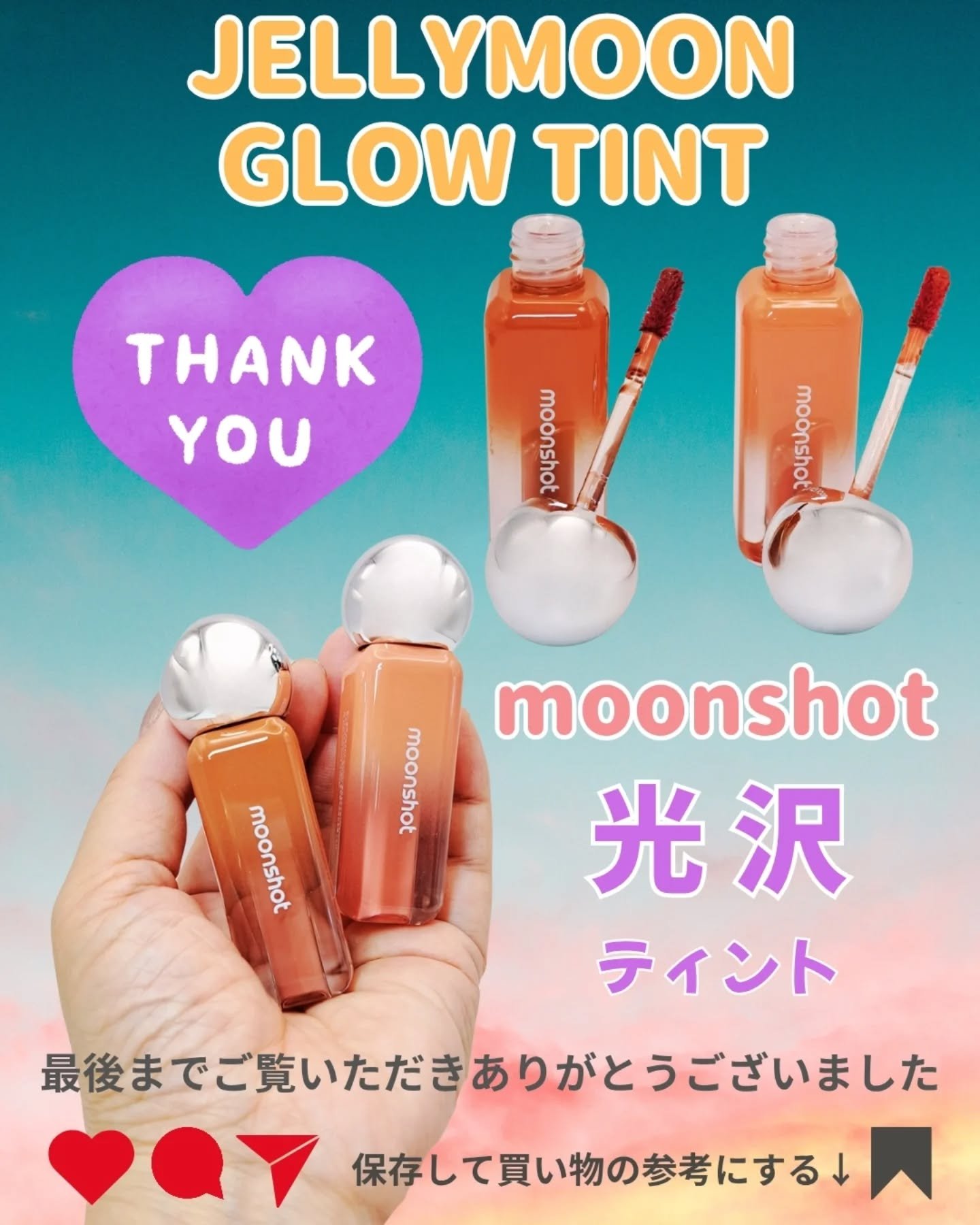 #商品提供《moonshotムーンショット》JellymoonGlowTint02ピーチソーダ03アルテミスコーラルジェリーのようなとろみのあるテクスチャーで、唇がぷるんとなります軽いつけ心地と高い保湿感カラーの持続性が高く、食事をしても色が...