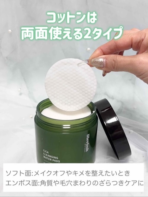 🎀Meebak🎀💎CICAクレンジングウォーターパッドW洗顔不要のメイク落とし❣両面使えるコットン仕様✨ソフト面:キメを整えるエンボス面:角質・毛穴汚れケアCICA(ツボクサエキス・整肌成分)配合で低刺激処方です🌈@meebak.jp#PR#...