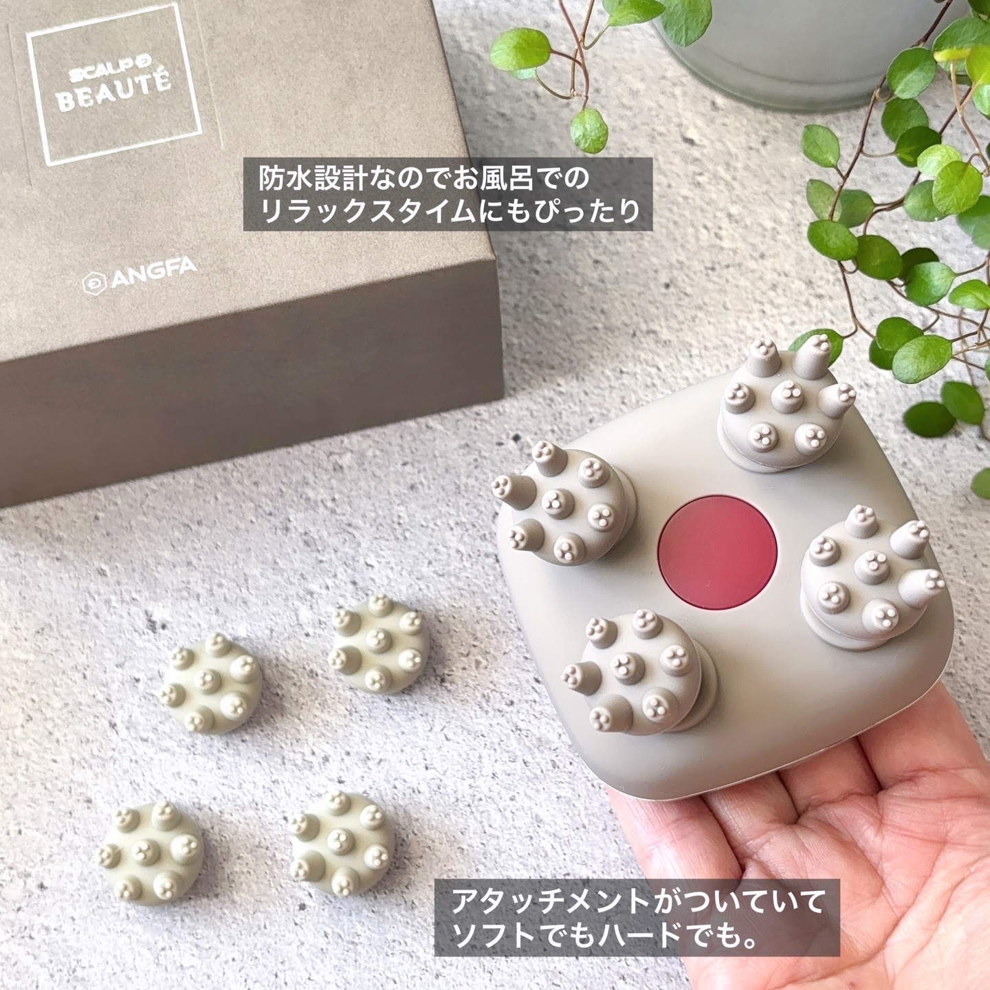 - 頭皮をグっと引き上げるブラシで極上スパ体験 4つのヘッド、合計28か所の接触点が微細な動きを放ち、確かなパワーで立体的な刺激をもたらします。また、3D頭部フィット設計により、ブラシが頭の丸みに沿って自然に頭頂部まで動くため、特別な技術は不要。頭皮にあてて軽く動かすだけで、ヘッドスパのような贅沢な体験をお楽しみいただけます。 人間工学に基づいたブラシでスッキリ洗浄 自社調査によると、女性の2人に1人が「髪だけでなく、頭皮までちゃんと洗えているか不安」に感じていますと回答※。頭皮の皮脂汚れや毛穴のつまりは、べたつきやにおいだけでなく、薄毛や抜け毛のリスクにも繋がります。「スカルプD ボーテ ビューティーヘッドスパ」は、独自技術として特許取得されている人間工学に基づいたオリジナルのブラシ設計です。シャンプー中にご使用いただくと、頭皮のスッキリ感と髪のふんわり感を体感いただけます。 ※2025年2月実施、全国20~50代女性300名への「頭皮トラブル」に関するインターネット調査より 赤外線搭載で、じんわり温熱ケア 赤外線搭載で、深部※をじんわり温めながら頭皮をほぐします。温熱ケアが、毛髪を作り出す細胞の活性化にもアプローチ。将来の美髪ケアにも繋がります。肩や首にご使用いただく際にも、温熱による血流促進で、凝りほぐしに効果が期待できます。 ※角質層まで 心地よさとフィット感を自由にカスタマイズ 「スカルプD ボーテ ビューティーヘッドスパ」のブラシ部分には、ハードタイプとソフトタイプの2種のアタッチメントが付属されています。また、強さレベルは3段階から選択可能。お好みのブラシタイプとモードで、あなたの頭皮に合ったマッサージが可能です。 <アタッチメント> ・ソフトタイプ(やさしい刺激、敏感肌・初心者向け) ・ハードタイプ(しっかりした刺激、深層マッサージ向け) <強さレベル> ① ソフトケアモード ② ナチュラルケアモード ③ ディープケアモード 防水仕様&軽量!手のひらサイズで疲れにくく、続けやすい 「スカルプD ボーテ ビューティーヘッドスパ」は、入浴中や入浴後のタイミングでご使用いただくことをおすすめしています。そのため、IPX7防水仕様で浴室でも気軽に使用可能。また、手のひらサイズで172gとスマホより軽く※、使いやすさにもこだわりました。 ※iPhone Pro Maxシリーズと比較