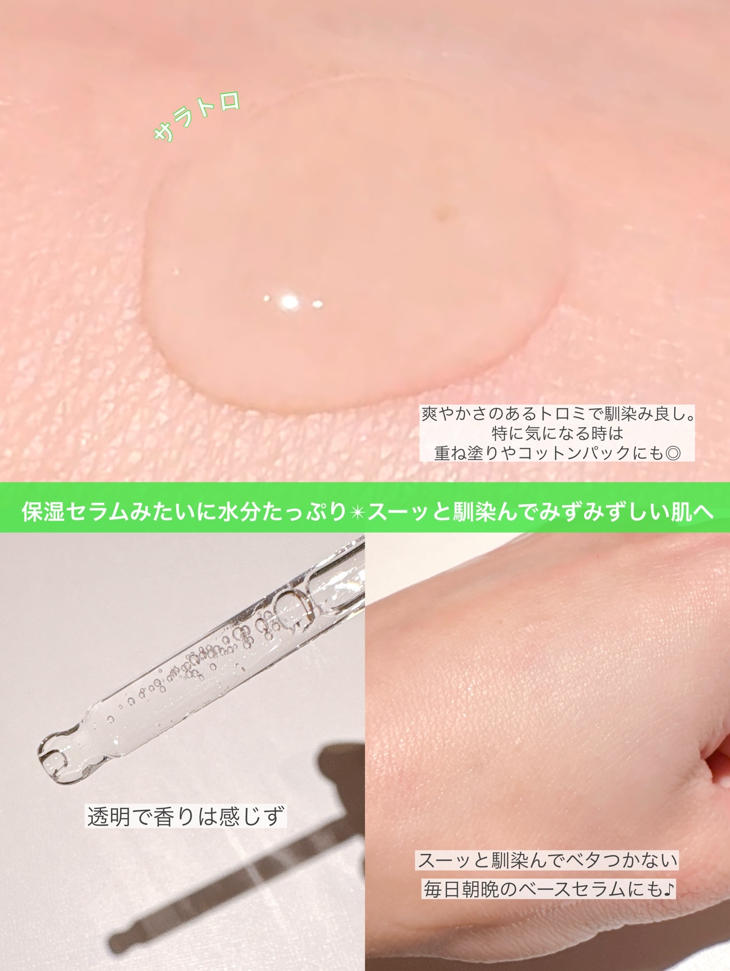 | とろみのあるテクスチャーだけど、肌にのばすとさらっとしていてみずみずしい使用感だよ☺️ | 詳細を見る | |