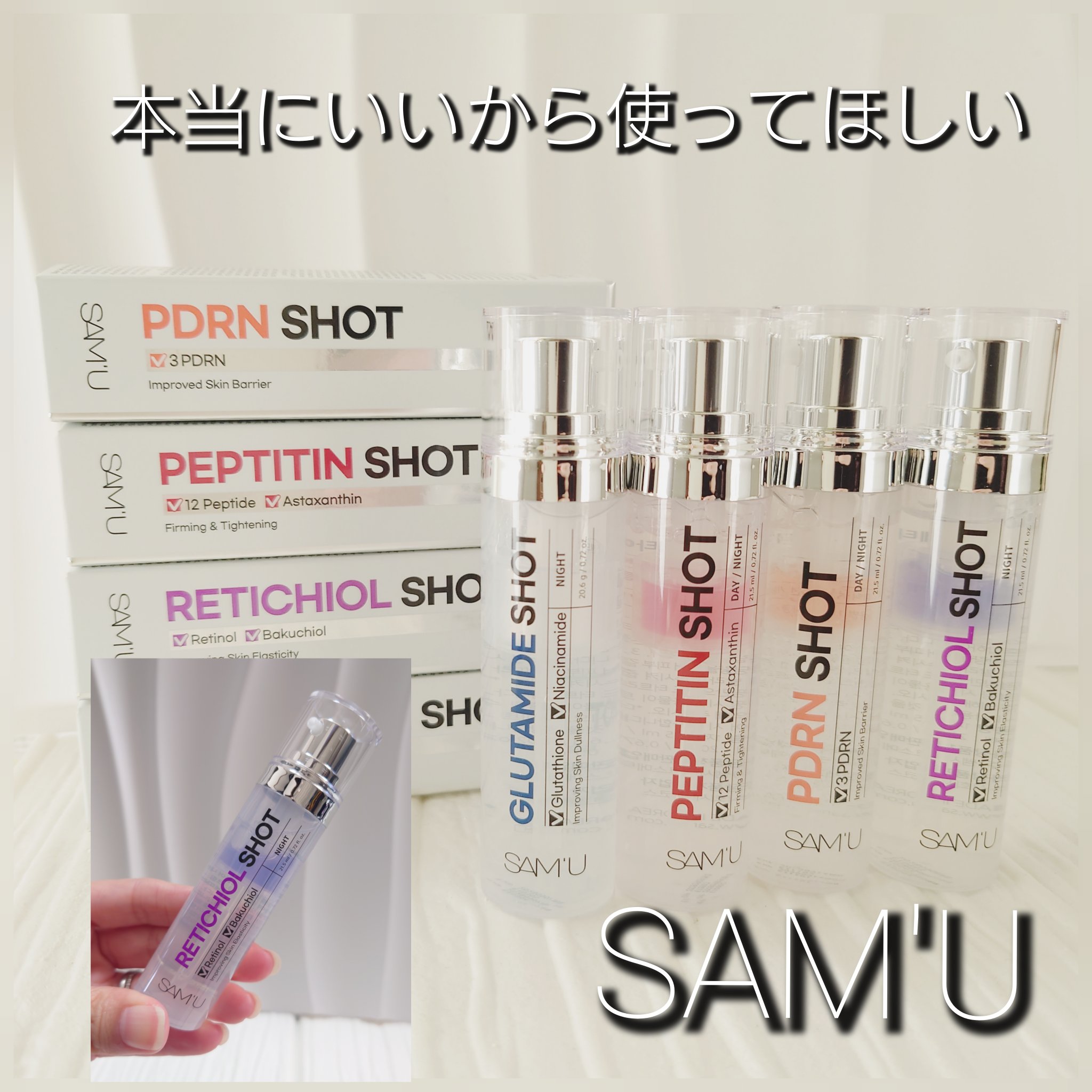 SAM'U ◆シナジーショット4種SAM'Uのアンバサダーに選んでいただきました♪1層の核心アクティベーターと2層のベースセラムが配合され完成するミックス&ショットブースティングケア✨使用開始のタイミングで実際に混ぜる形になる新鮮なセラム❤️...