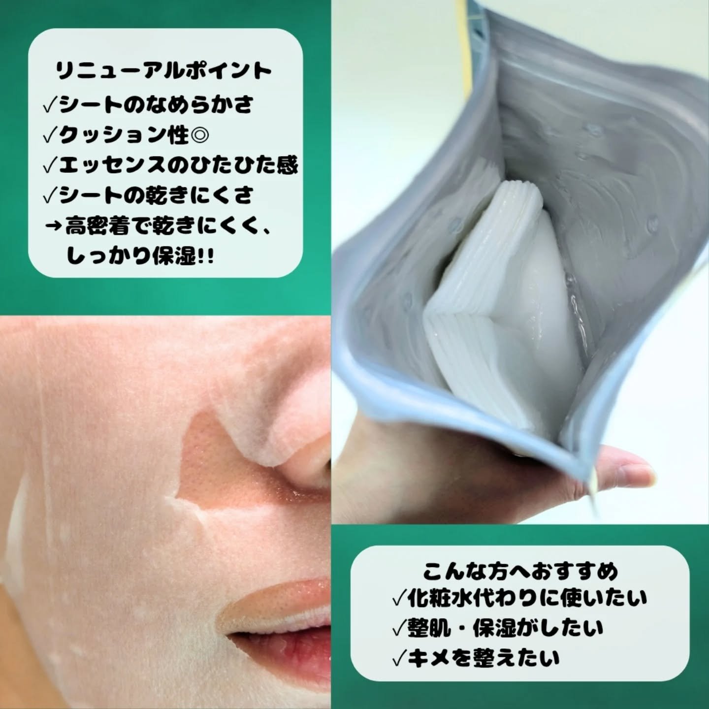 🍀バランスぷるんと肌🍀Dr.ルルルン株式会社様に商品を提供いただきました毎日の化粧水の代わりに使える化粧水フェイスマスクルルルンプレシャスGREENバランス7枚入感想𓃟シートが厚めでしっかり潤いが浸透するような感覚でした!液がたっぷり入ってい...