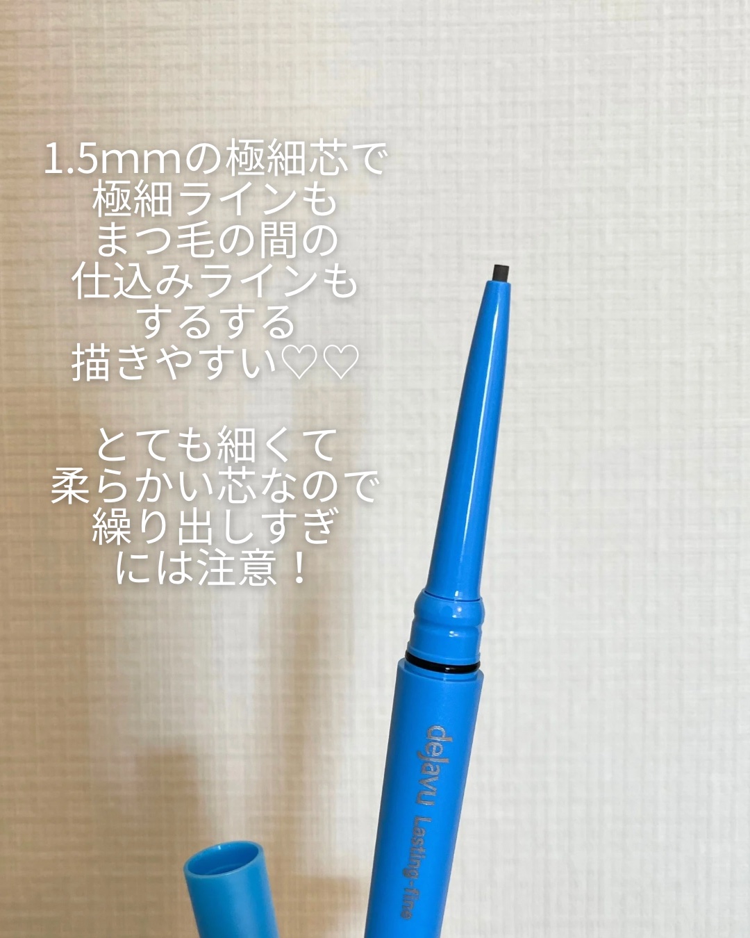 - ”なめらかなのに にじまない”クリームペンシル極細芯タイプ ・史上最細!*直径1.5㎜の超極細芯 ・自然なラインが長時間続く**スーパーウォータープルーフタイプ ・肌当たりが非常にやさしく、なめらかに描ける処方を採用 *ブランド内において **効果には個人差があります デジャヴュ ラスティンファイン 極細クリームペンシル