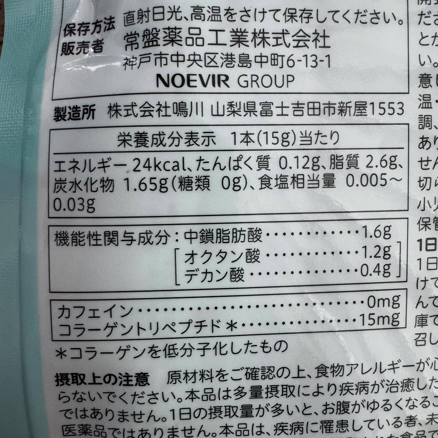 - ・MCT(中鎖脂肪酸)配合の機能性表示食品。 ・機能性関与成分の中鎖脂肪酸(オクタン酸、デカン酸)は 運動時の脂肪の燃焼を高めることが報告されています。 ・コラーゲントリペプチド15mg配合。 ※コラーゲンを低分子化したもの ・手軽に美味しく続けやすいスティックゼリータイプ。 ・なめらかプリン風味。 ・ノンカフェイン、糖類ゼロ。