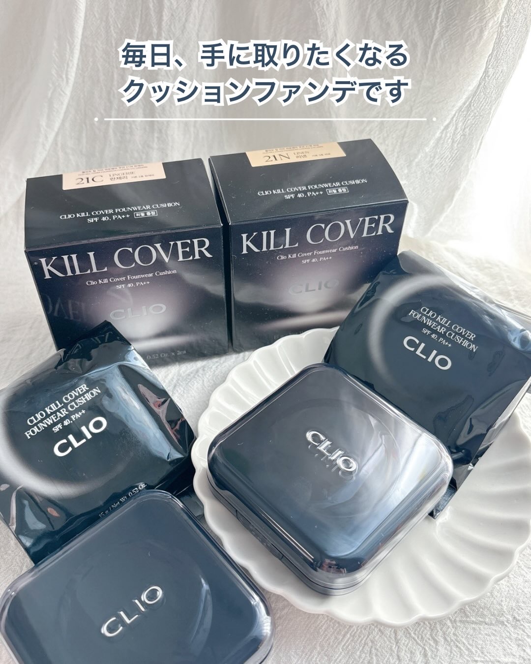 \オールデイカバークッション/肌のトーンをナチュラルに補正して明るく華やかな印象に!CLIOキルカバーファンウェアクッション21Cランジェリー/ 21Nリネン@cliojapan#PR#CLIO#韓国コスメ#オールデイカバークッション...
