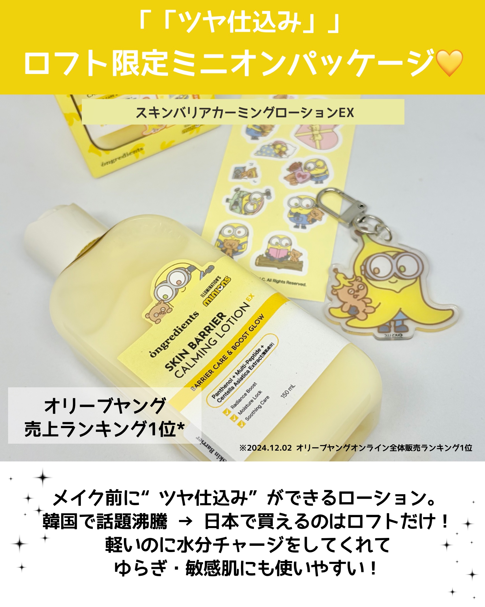 - 「ongredients(オングリディエンツ)」が、ついに日本のオフライン店舗に登場! <2025年8月30日(土)(※1)より全国のプラザ、ドン・キホーテ(※2)にて先行販売を開始> メイクノリが上がるツヤ肌乳液 【主要成分】 ・オリオソームTECA(※3) ツボクサ由来成分(※3)をオリオソーム技術で包み込み、肌に馴染みやすい設計にすることで、外的刺激を受けた肌を落ち着かせます。 ・複合ペプチド(※4)&ヴィーガンコラーゲン(※5) 肌コンディションを整え、内側から輝くようなツヤ肌を演出します。 ・パンテノール(※6) 角質層まで浸透(※7)し、うるおいのある肌印象へと導きます。 【こんな方におすすめ】 ・ツヤ感のあるメイクを好む方 ・水分感のあるツヤ肌を目指したい方 ・外的刺激によりゆらいだ肌を労わりたい方 (※1)店頭開始日となり、購入可能日は各店舗により異なります。 (※2)一部店舗を除きます。 (※3)アシアチコシド,アシアチン酸,マデカシン酸(整肌成分) (※4)ヘキサペプチド-11,オリゴペプチド-1,オリゴペプチド-2,オリゴペプチド-3,アセチルヘキサペプチド-8,カラスムギペプチド,トリペプチド-1銅,パルミトイルヘキサペプチド-12,パルミトイルペンタペプチド-4,パルミトイルテトラペプチド-7,パルミトイルトリペプチド-1,トリペプチド-1 (※5)ハイビスカスコラーゲンから抽出した加水分解コラーゲン(整肌成分) (※6)保湿成分 (※7)角質層まで