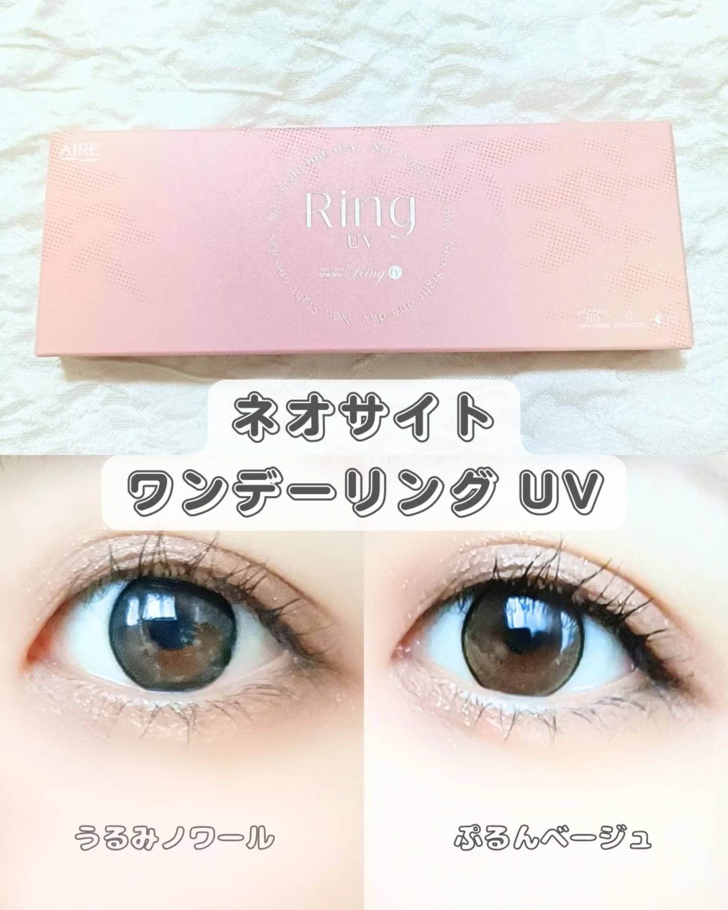 *ネオサイトワンデーリングUV\10月27日NEW/ぷるんベージュうるみノワールBC:8.6mmDIA:14.0mm着色直径:13.4mmあめ玉質感のうるみドロップレンズ🫧派手すぎず日常使いしやすいレンズ◎どちらもうるみ感があって可愛いの🥹🩷...