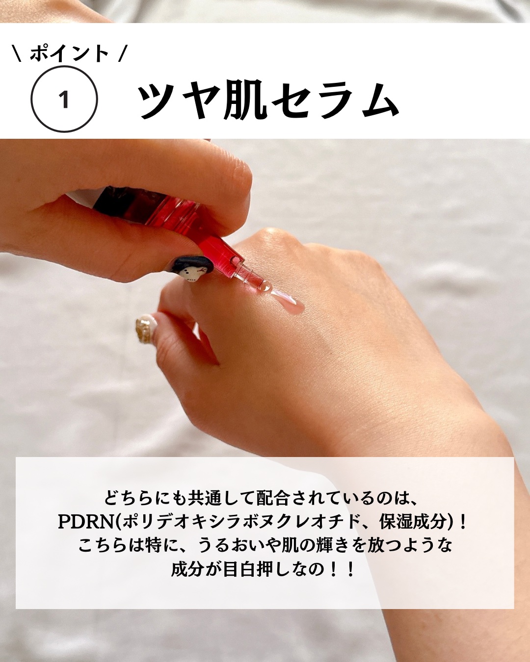 特にほぼ毎日使ってるのはトリデンのダイブインセラム、あと水分感よりも皮脂や毛穴が気になる時はCOSRXのナイアシンアミドとInnisfreeのレチノールシカの組み合わせを使う事が多いかな?🥹🫶 ただこの中にエイジングケア系があまり無いのは、私がなぜかエイジングケア系を使うと口周りとかがピリピリしてしまって荒れてしまうので、選んでないよ😭