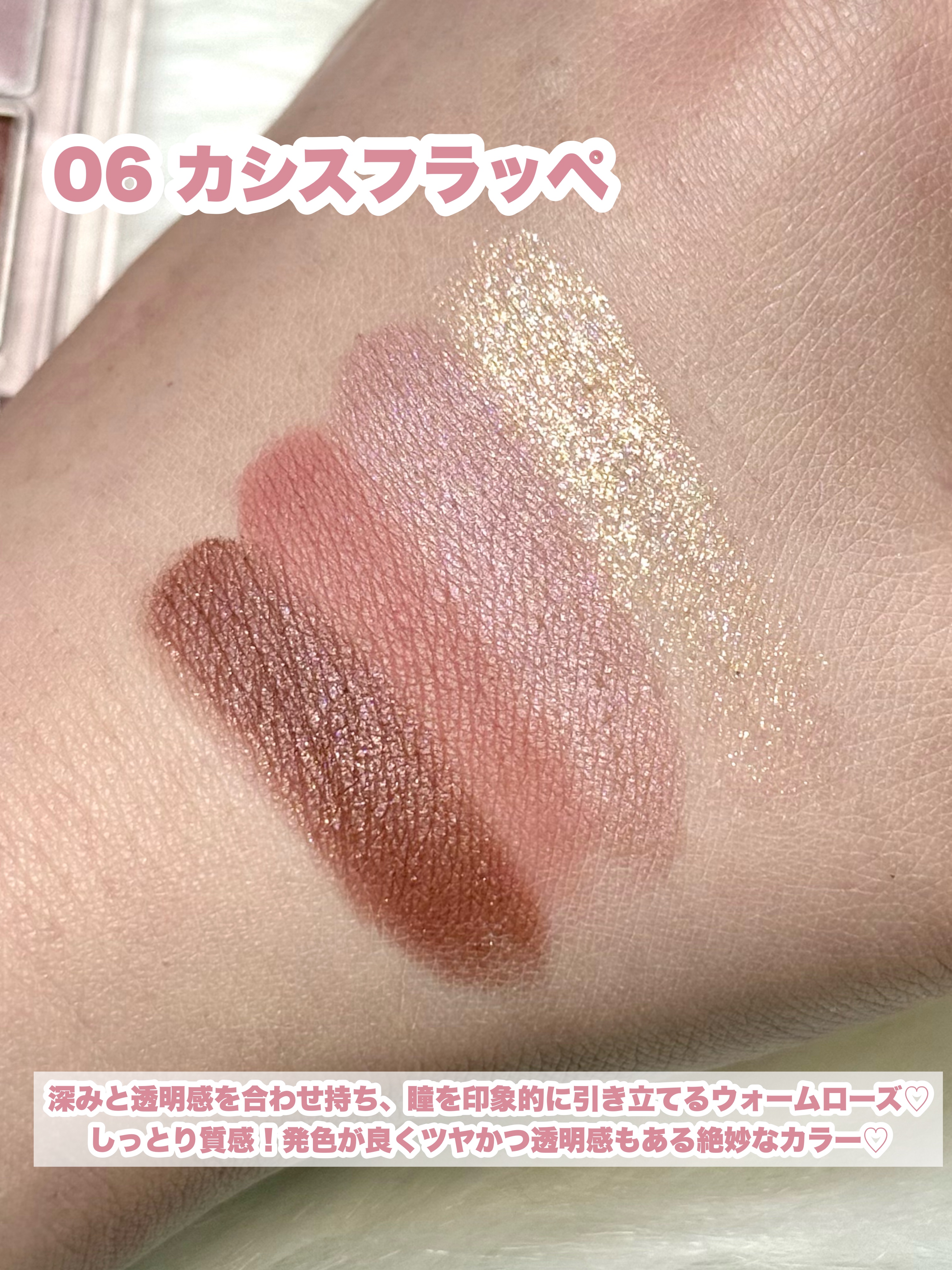 | アイシャドウパレットランキング第9位 | 光にあたるとキラッと輝くのにギラつき感はなくて、程よいツヤのようにも見える絶妙さがたまらない🥰 | 詳細を見る | |