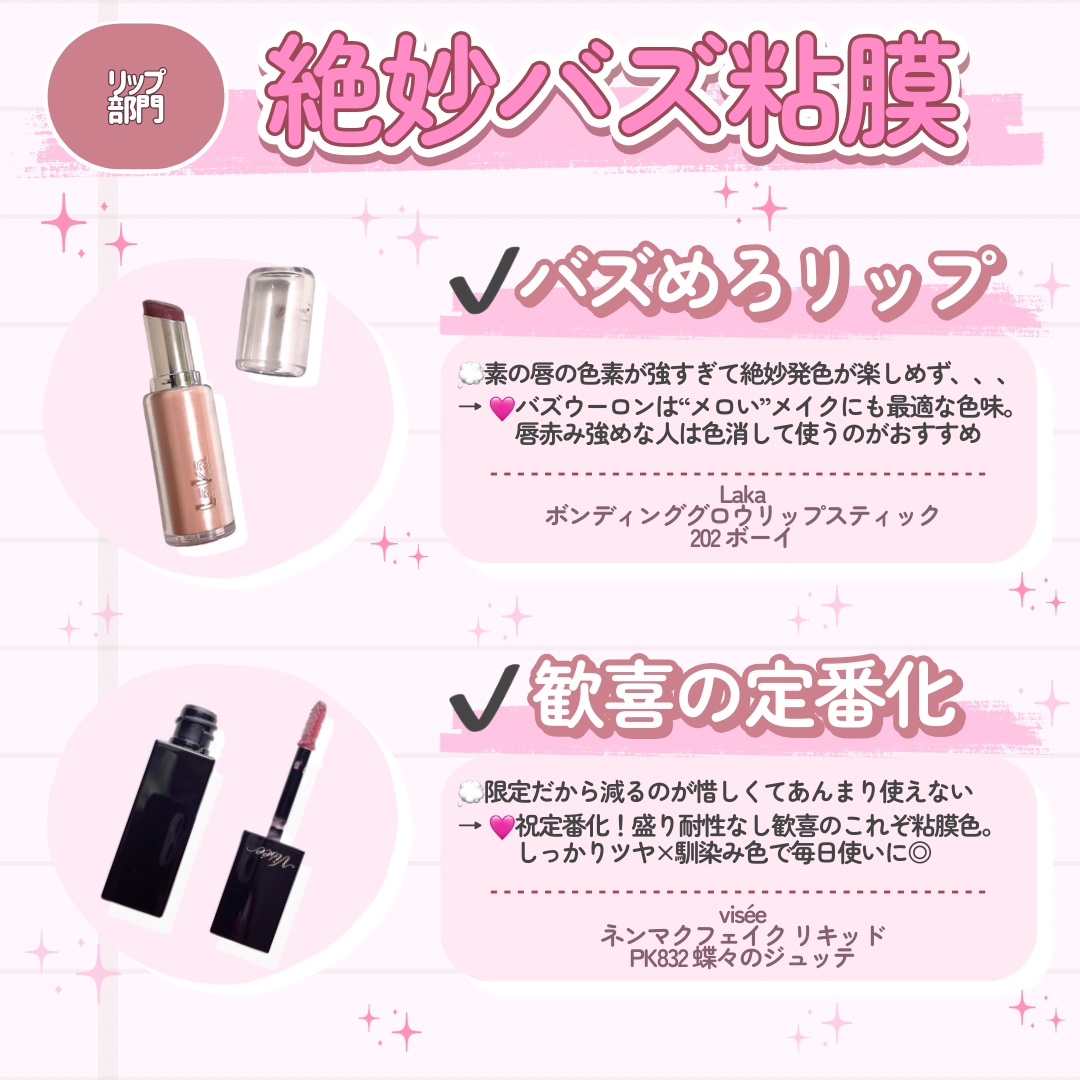 | 口紅・グロス・リップライナーランキング第47位 | まるで自身の唇と一体化したかのような自然な血色感で、 むっちりとした色気のある唇へ導く新作リップ💄 粘膜のような色とツヤが長時間つづきます💗 | 詳細を見る | |