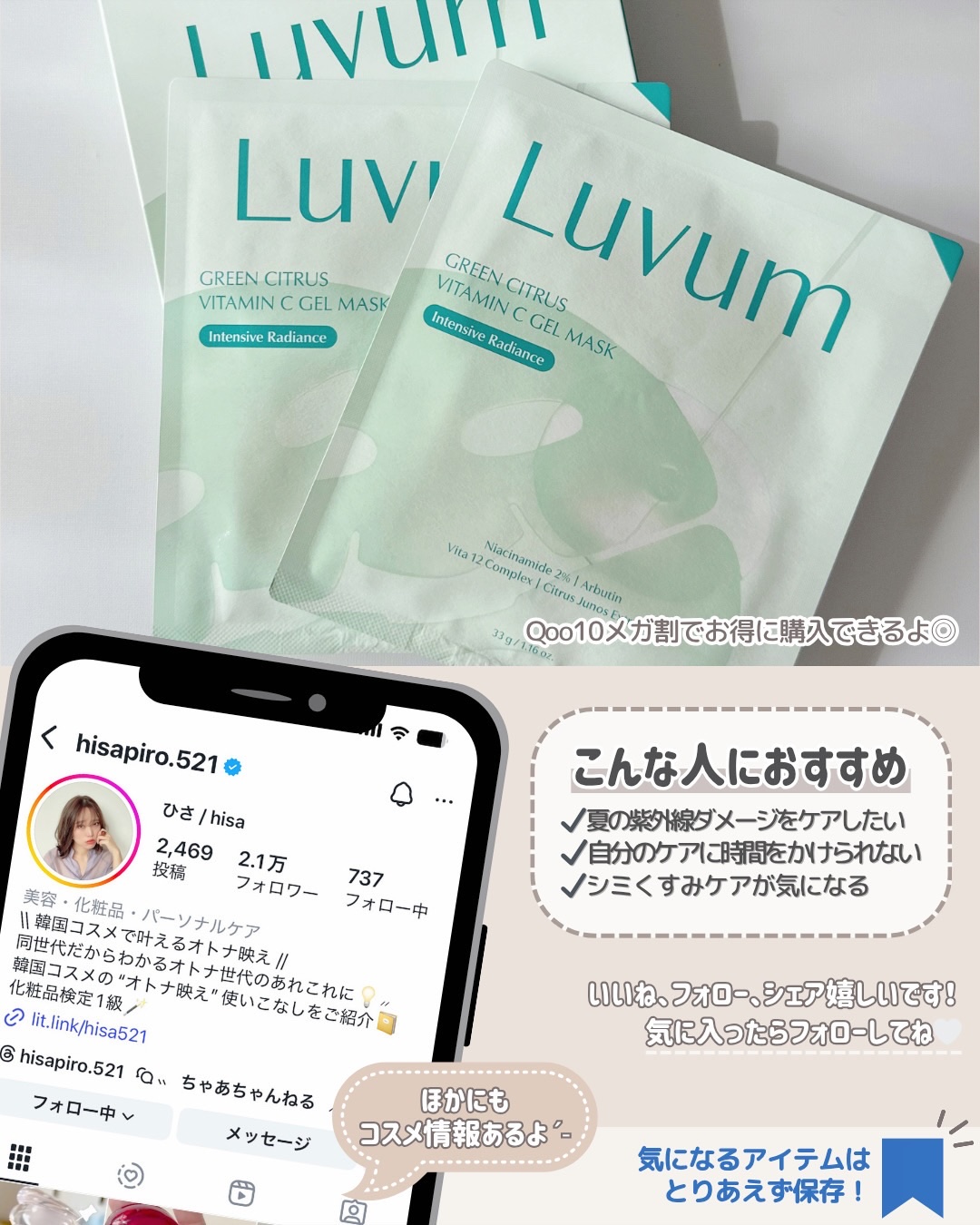 ✼••┈┈••✼••┈┈••✼••┈┈••✼••┈┈••✼#PRLuvumグリーンシトラスビタミンCゲルマスク明るく澄んだ肌へ導くゲルマスク🧏🏻♀️🤍⸝꙳.˖ナイアシンアミド*とアルブチン*配合で寝たままツヤ・キメを整えスペシャルケア😴🌙忙...