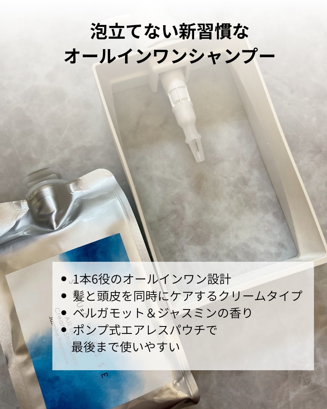 ◽️◽️◽️“忙しい夜こそ、これ1本。”ドタバタした1日の終わりに、わたしが手に取るのはSOUPLESSE「オールインワンクリームシャンプー」🛁泡立たないクリームで、頭皮も毛先もまるごとケア。しかも1本で6役をこなしてくれるから、シャンプー→...