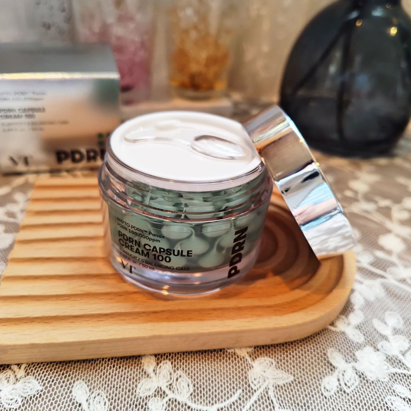 VTさまからいただきました🎁🌿🌿🌿☑︎VTPDRN+カプセルクリーム100୨୧୨୧SNSで話題になっている、ぷるぷるとしたジェルと鮮やかなグリーンのカプセルが印象的だったカプセルクリーム💎透明なジェルとグリーンのクリーム部分が入っておりジェル...