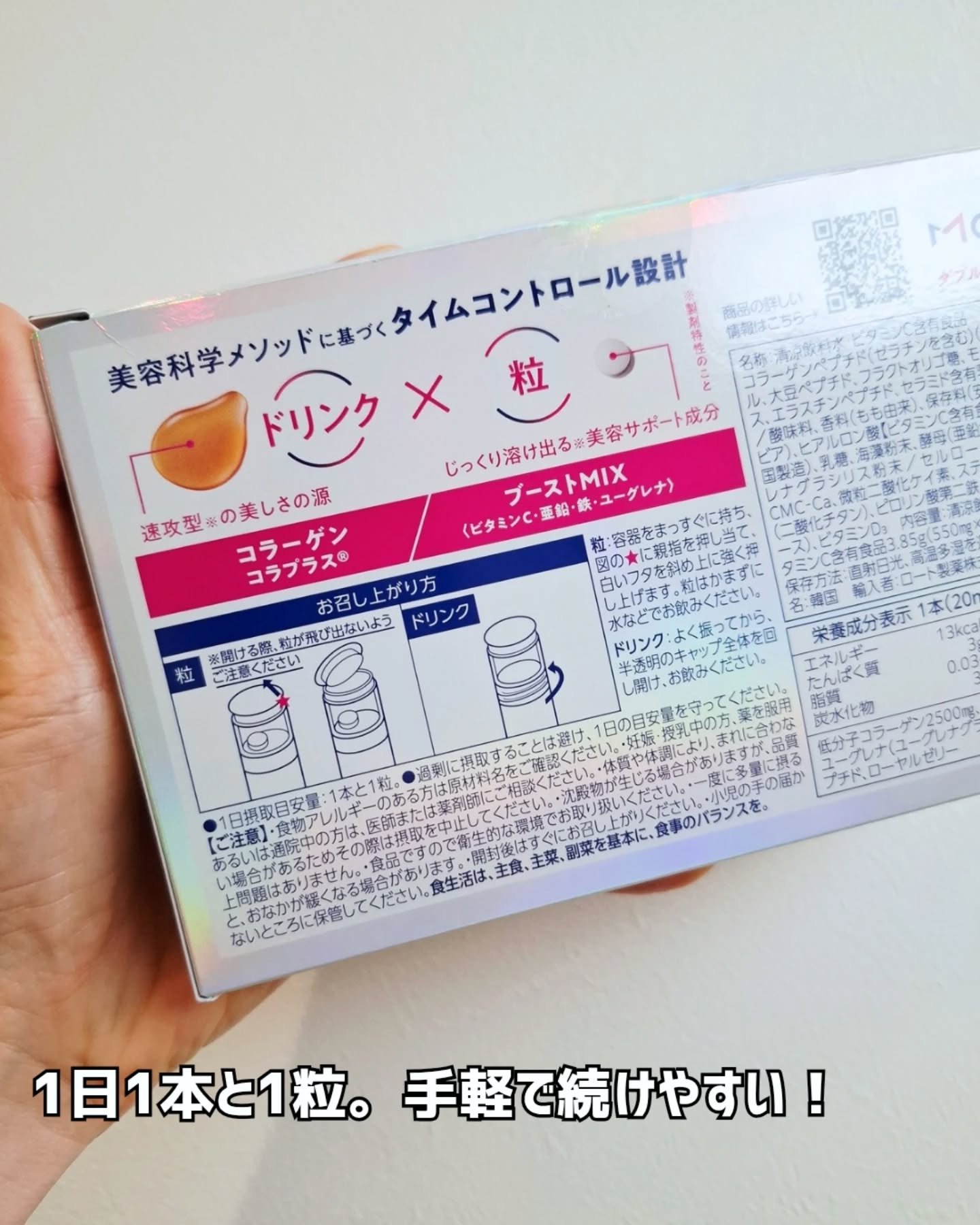 - ①美容科学メソッドに基づくタイムコントロール設計※1 速攻型※2の美しさの源となる成分を“ドリンク”に、じっくり溶け出る※2美容サポート成分を“粒”に含有し、組み合わせることで、成分ごとに溶ける時間をコントロールしました。 ・ブーストMIX(粒) 「粒」には特許出願済み成分、“ブーストMIX”を配合しています。 ・ドリンク 速攻型※2の美しさの源である、コラーゲン、ロート独自成分であるコラプラス等を配合したドリンクです。 ピーチ&アセロラ味を採用し、飲みやすさにもこだわりました。 ※1 特許出願済み ※2 製剤特性のこと 2025年5月29日(木)より順次、全国のマツモトキヨシグループ、ココカラファイングループの店舗(一部店舗を除く)およびマツキヨココカラオンラインストア、ロートオンラインストアにおいて、先行販売