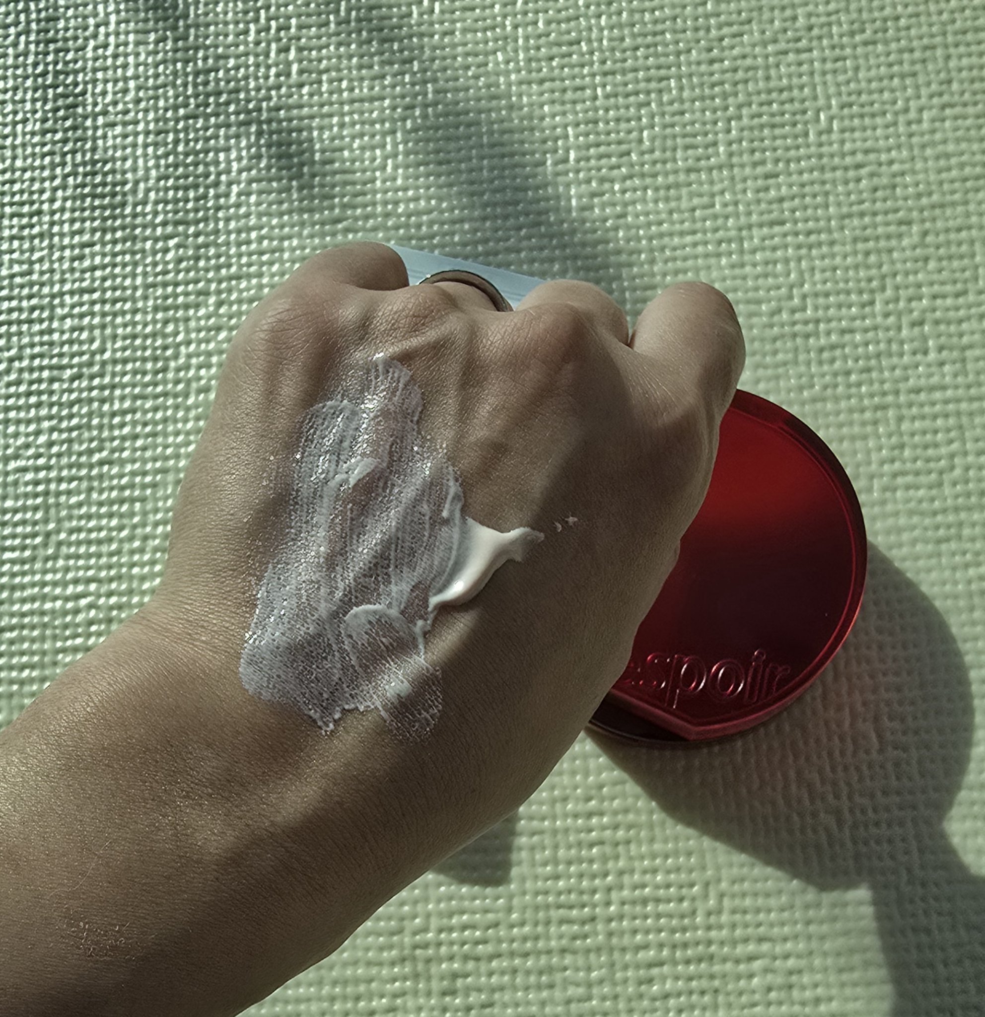 いつもパッケージがかわいいので気分が上がる‼️ これには、化粧水、乳液、サンクリーム、下地までの機能がコミコミということで、洗顔後これさえあればメイクにすぐ入れるので、節約と時短まで叶う。忙しい毎日にちょうど良い‼️ テクスチャー: クリームでもない、テクスチャーはとろみのある液体というのか? 中にはキラキラしたものが入っている。 スーっと馴染んで、サラサラになる。これから来る夏に、さらさらは大事。