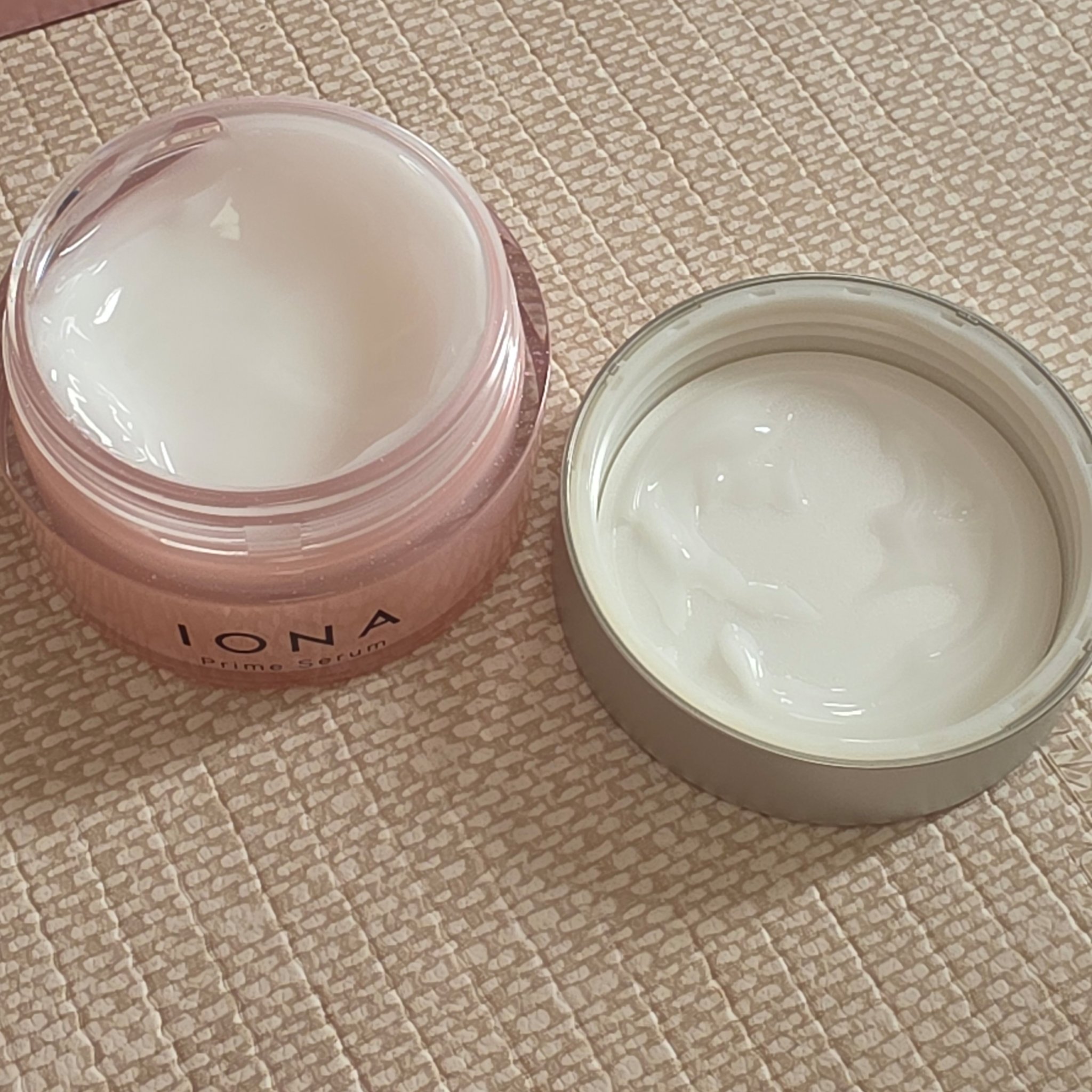 - <イオナ プライム セラム> 水、グリセリン、BG、トリエチルヘキサノイン、トリポリヒドロキシステアリン酸ジペンタエリスリチル、岩石抽出物、グリチルレチン酸ステアリル、グリチルリチン酸2K、スーパーオキシドジスムターゼ、ナイアシンアミド、メリッサ葉エキス、アーチチョーク葉エキス、パルミトイルテトラペプチド-7、パルミトイルトリペプチド-1、セラミド1、セラミド2、セラミド3、セラミド5、セラミド6Ⅱ、ボタンエキス、水溶性コラーゲン、加水分解コラーゲン、ヒアルロン酸Na、加水分解ヒアルロン酸、フィトステロールズ、ペンチレングリコール、トコフェロール、乳酸Na、水添レシチン、クエン酸、クエン酸Na、カルボマー、(アクリレーツ/アクリル酸アルキル(C10-30))クロスポリマー、ステアリン酸PEG-5グリセリル、ポリソルベート20、水酸化K、PVP、HEDTA-3Na、トロメタミン、フェノキシエタノール