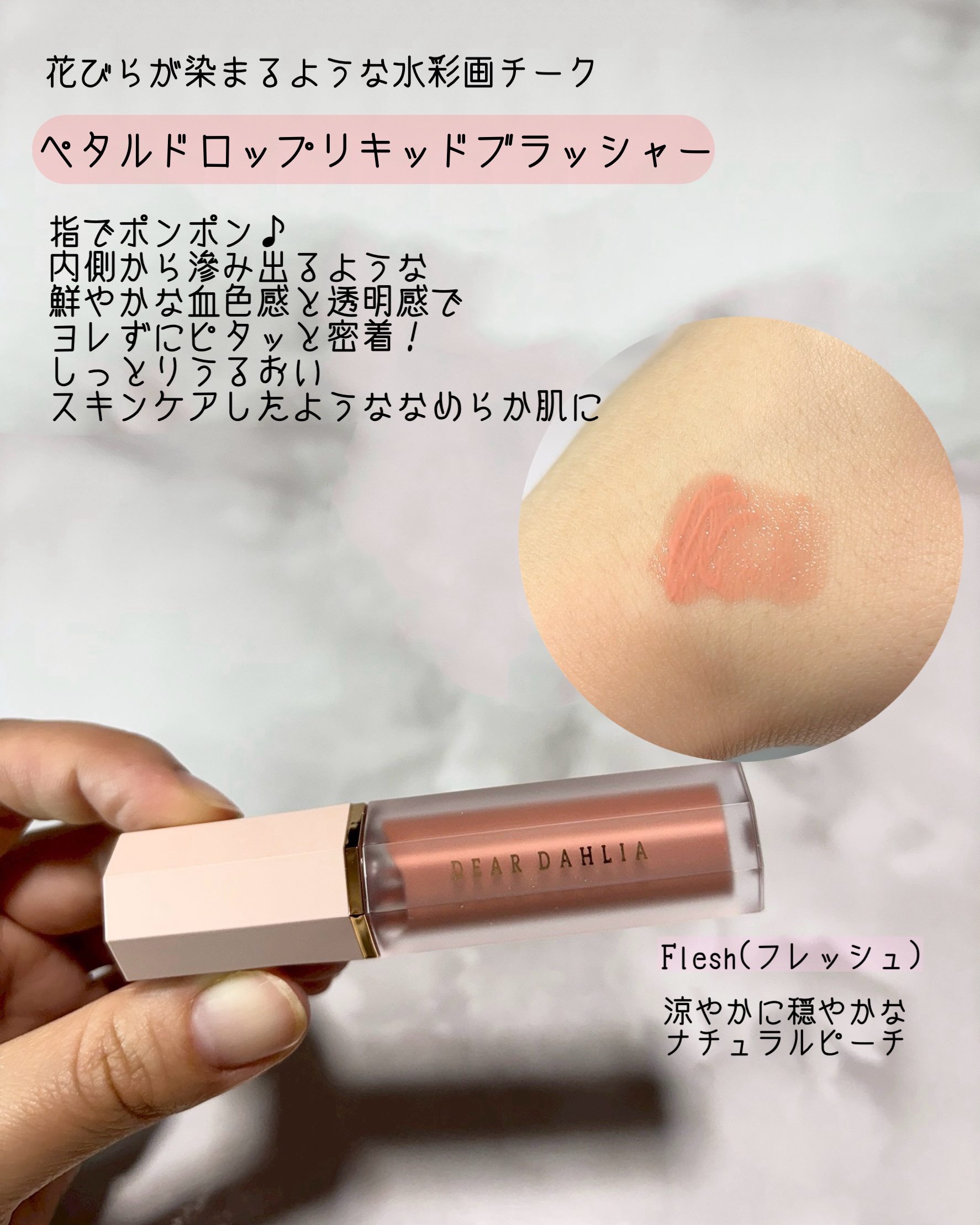 「DEARDAHLIA」さまから商品提供をいただきました。✼••┈┈••✼••┈┈••✼••┈┈••✼••┈┈••✼❤️DEARDAHLIAペタルドロップリキッドブラッシャー・フレッシュFLESH\繊細な発色&内側から滲み出るような鮮やかなチ...