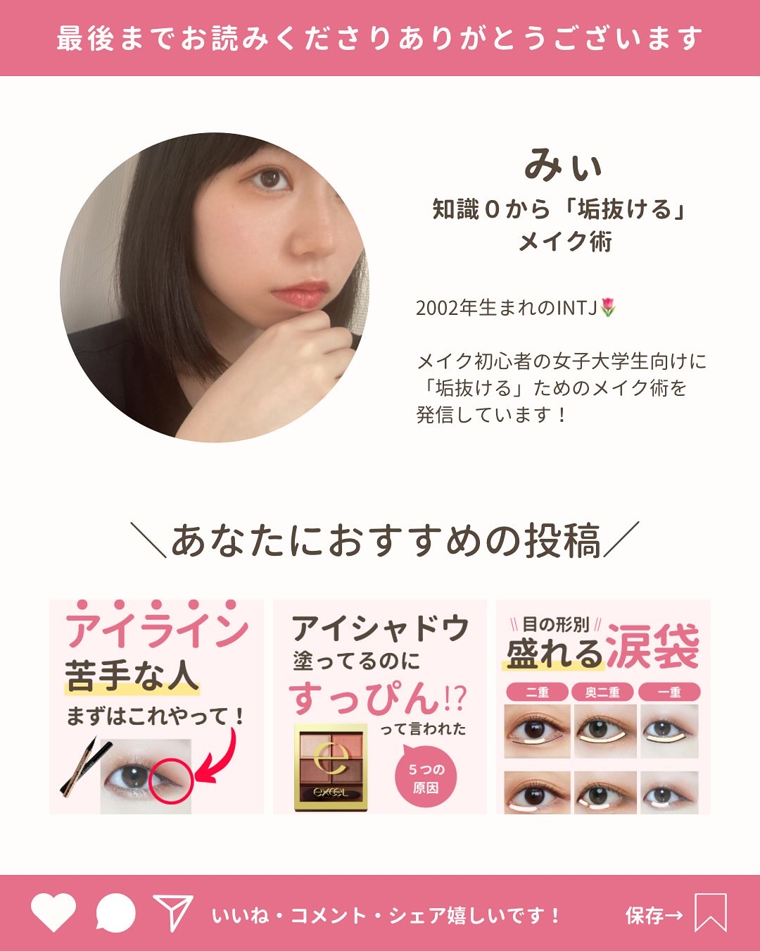 自分に合ったアイシャドウの見つけ方はたくさんありますが…今回はこの2点についてお伝えしていきます! パーソナルカラーを参考にする ☑目の位置を参考にする 詳しい内容は投稿の画像をチェック!
