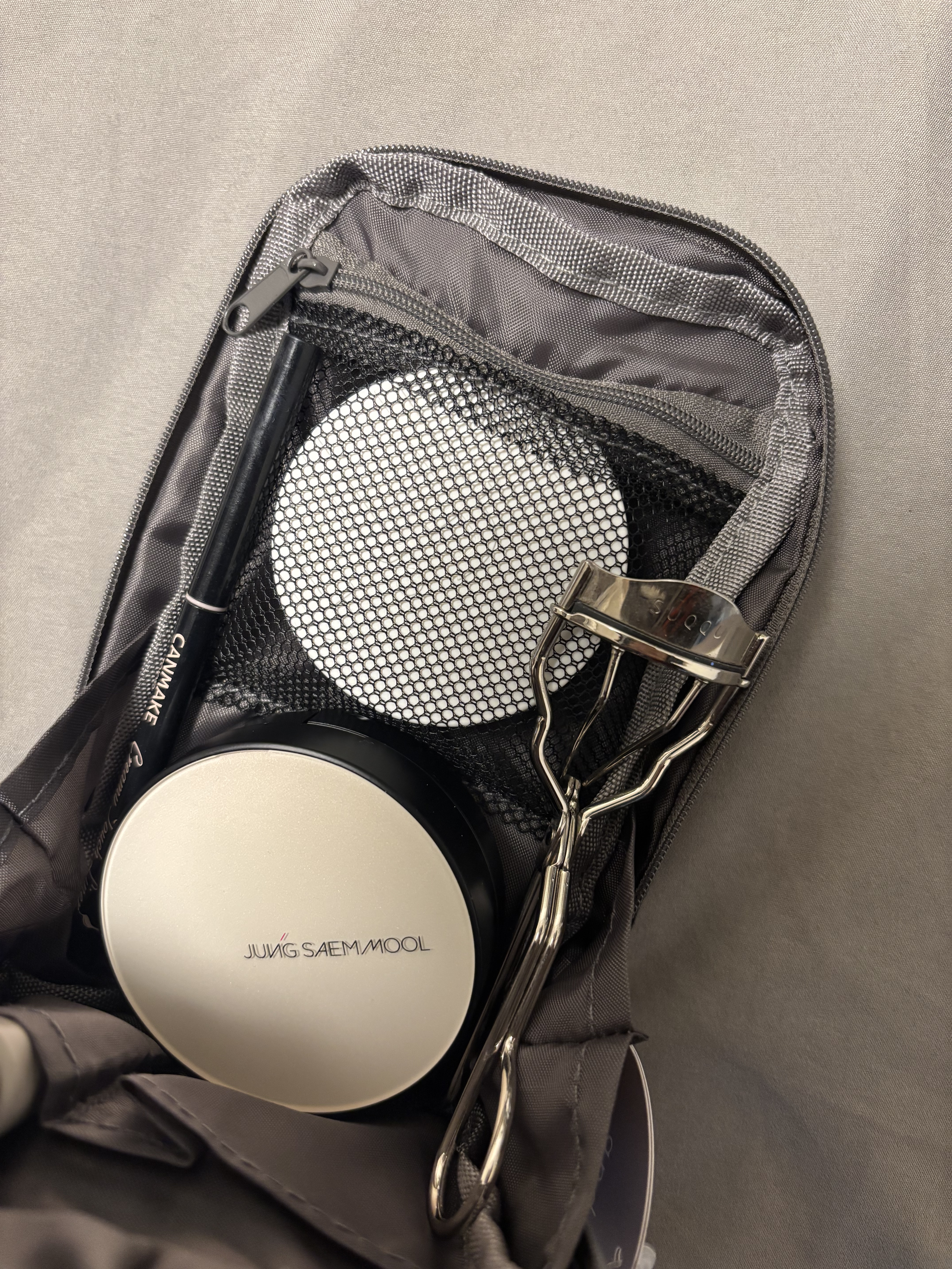 楽天で購入しましたが、縫い方が荒い、あんまり良くないって書かれてましたが私は許容内です✨底の部分が切れっぱなしかなって感じです。気になれば内部だし厚紙敷けば大丈夫👌 旅行や舞台鑑賞が趣味なためふらふらいろんなところに出没するのですが毎度巾着ポーチに入れては見当たらずガサゴソを繰り返してました💦 あとアイパレ持ち歩きたいけどなかなかサイズがない、あってもマチがなくて物が入らない等々困ってましたがめっちゃ入る👏 ゴムで筆やライナーも固定されるしサイズの違うポケットもあって使いやすい💓 見た目コンパクトなのにどうなってるの???と思います😳 現品ボトルも入るらしいです✨ 生地も汚れそうかなと思いきや真っ白じゃないのでそこまで目立たなさそう...! また自立してくれるのも使い勝手良くてありがたい👏👏👏 ななこちゃんの動画の説明がわかり良いと思うので気になる方は是非覗いてみてください✨✨✨ 私は切実にもう1個買うか悩んでます笑