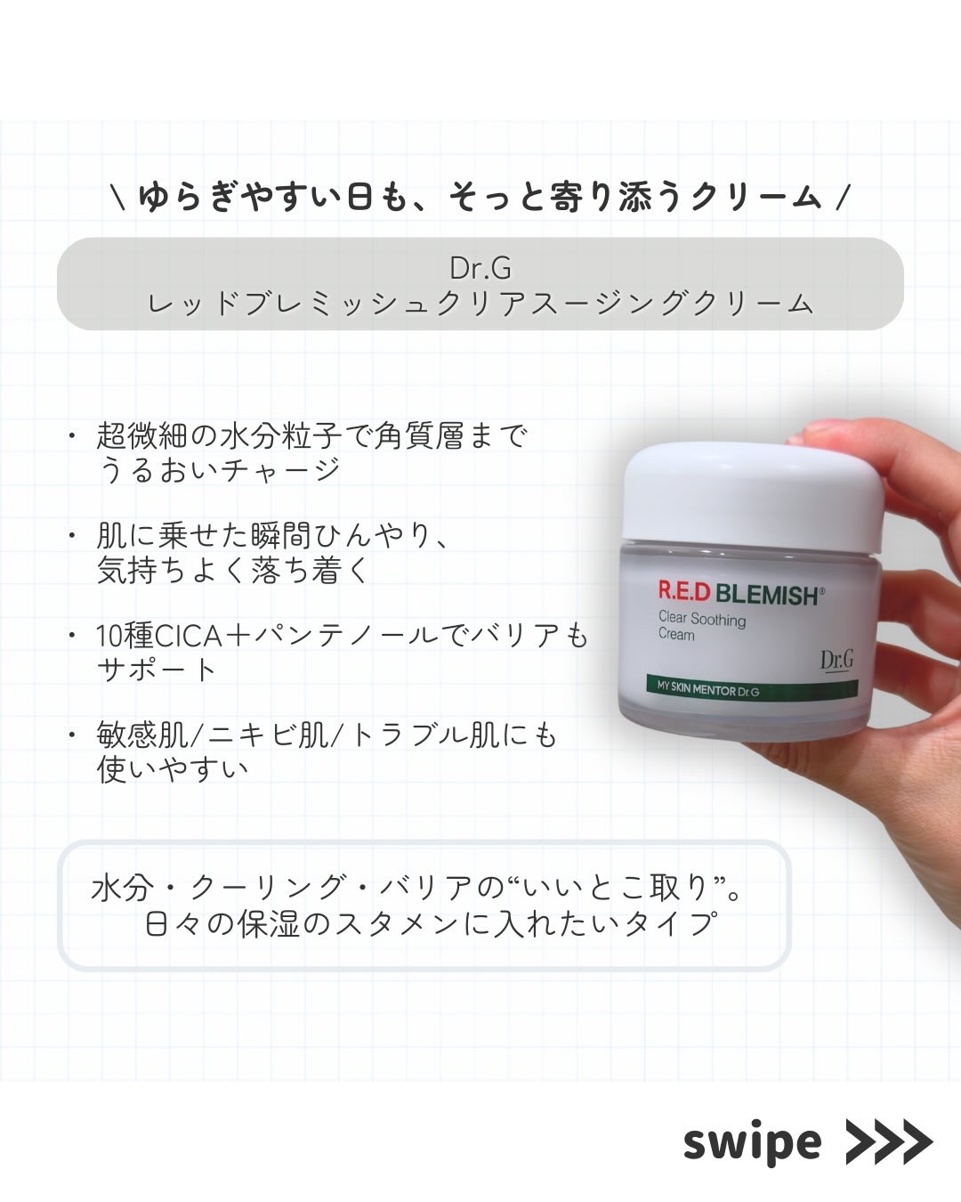 #PRDr.G水分.整肌.クーリングケア敏感で乾燥した肌に必要なもの集結!ෆ̖́-#レッドブレミッシュヒアルシカ水分セラム👉🏻毛穴の1/3390サイズのヒアルCICAナノゾームカプセルマグネティックヒアルロン酸成分水分を密着させながら届けるみ...