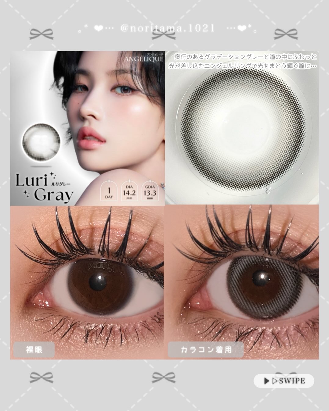 \うるツヤ盛れ水光カラコン/ANGÉLIQUE(アンジェリーク)i-dleSOYEON(ソヨン)イメージモデルカラーコンタクトレンズブランド😆💓LuriGrayルリグレー🩶奥行のあるグラデーショングレーと瞳の中にふわっと光が差し込むエンジェル...